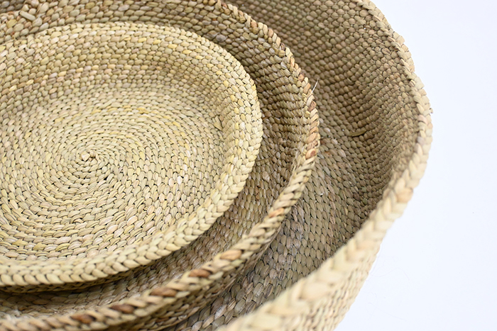 ミルルと呼ばれる硬い水草を細かく編んであり、自然素材ならではの