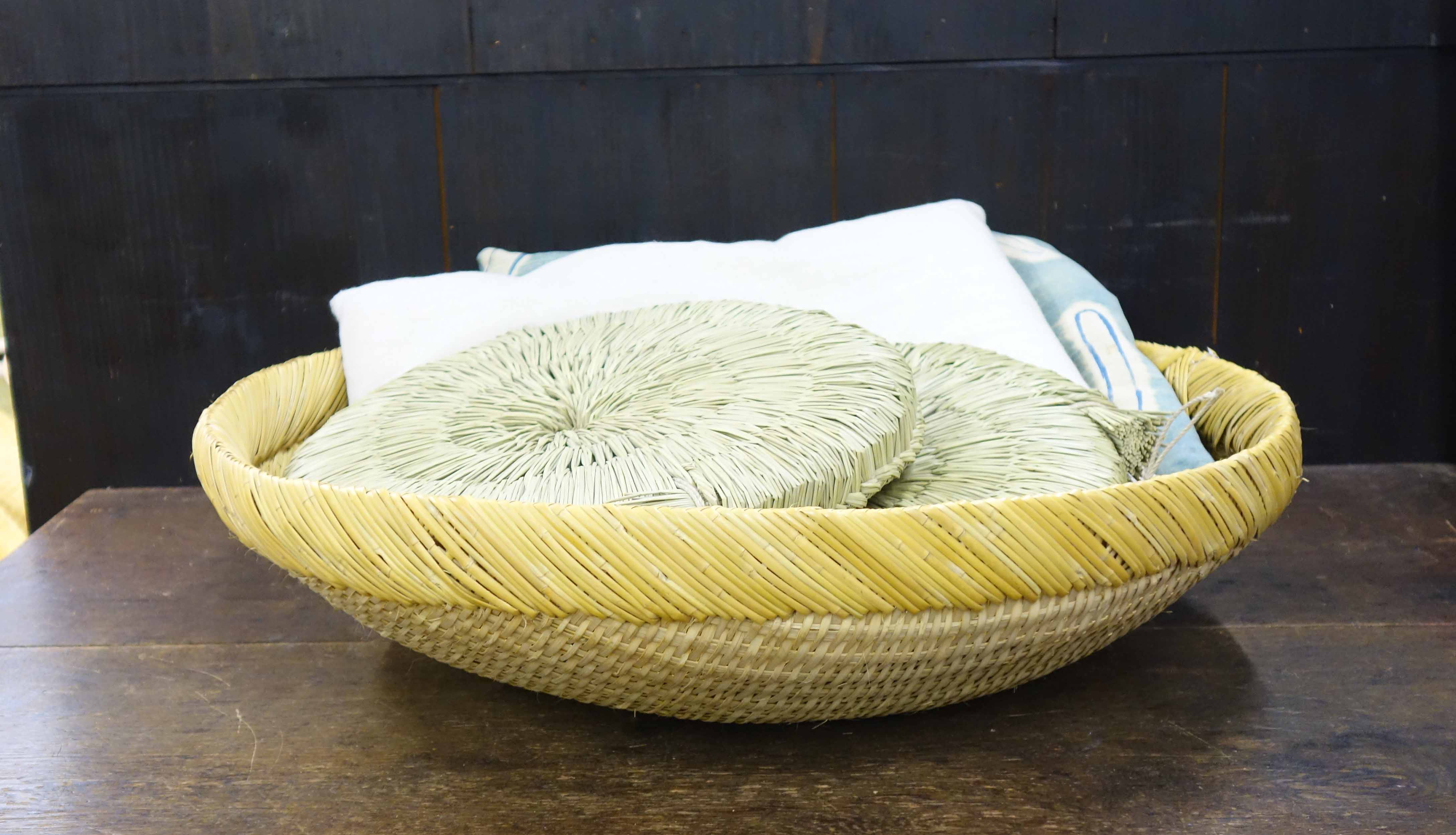小豆などを振って殻を取り除いたりする農作業に使われているとても大きなざるです。