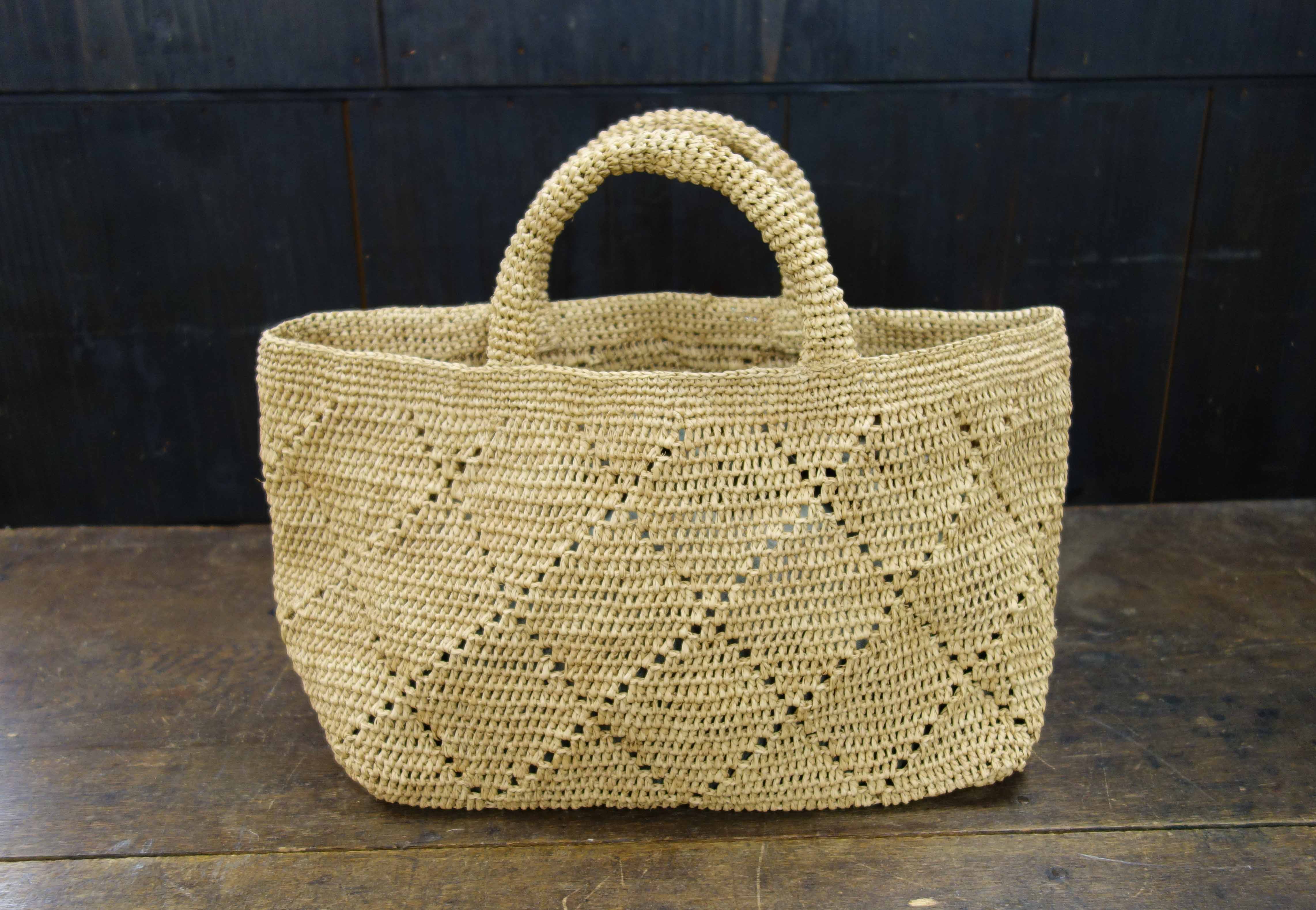 ラフィアかぎ編みバッグ 横長 ダイヤ柄 コーヒーベージュ が入荷しました。