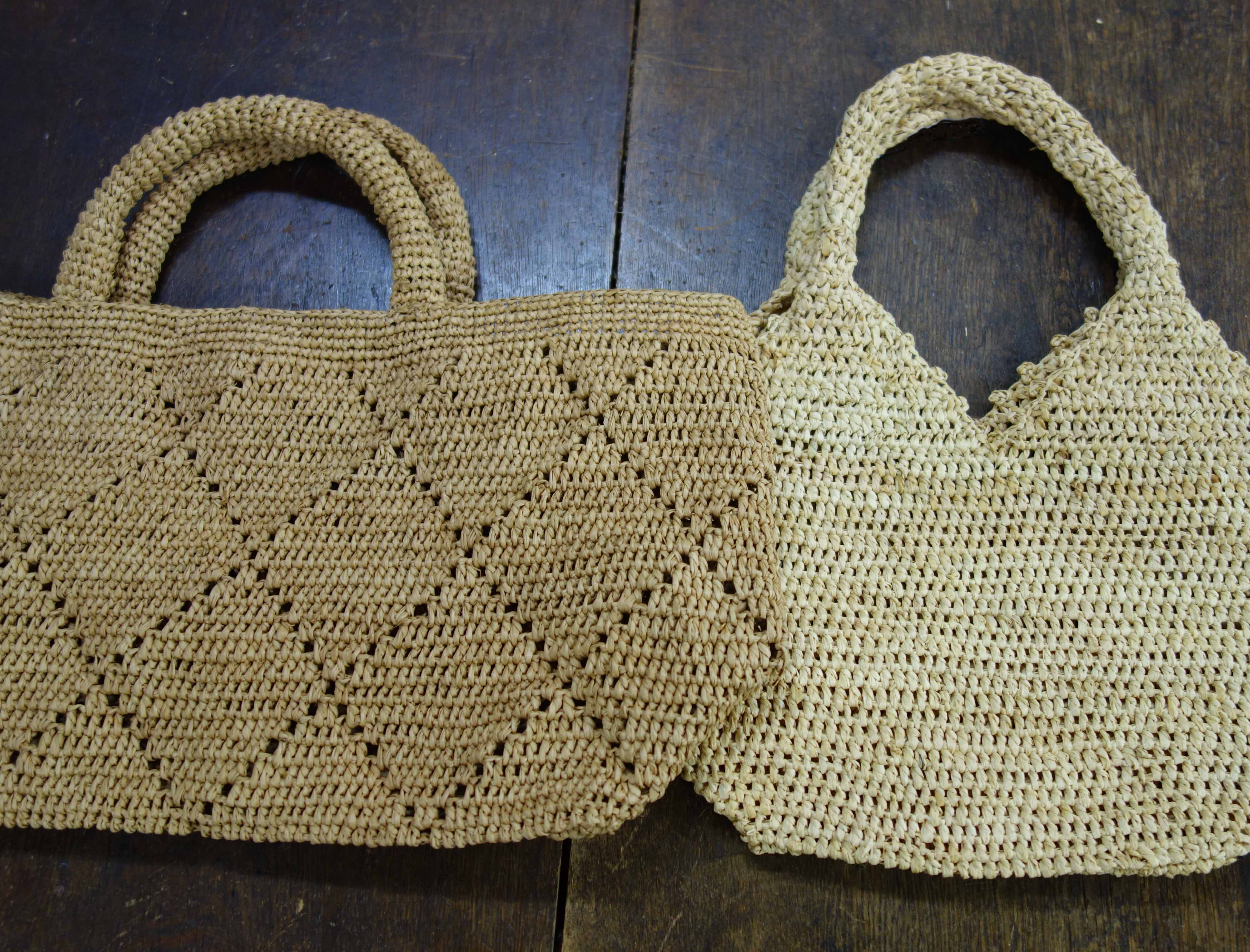 写真右)ラフィアクロッシェバッグミニ(10-1625)