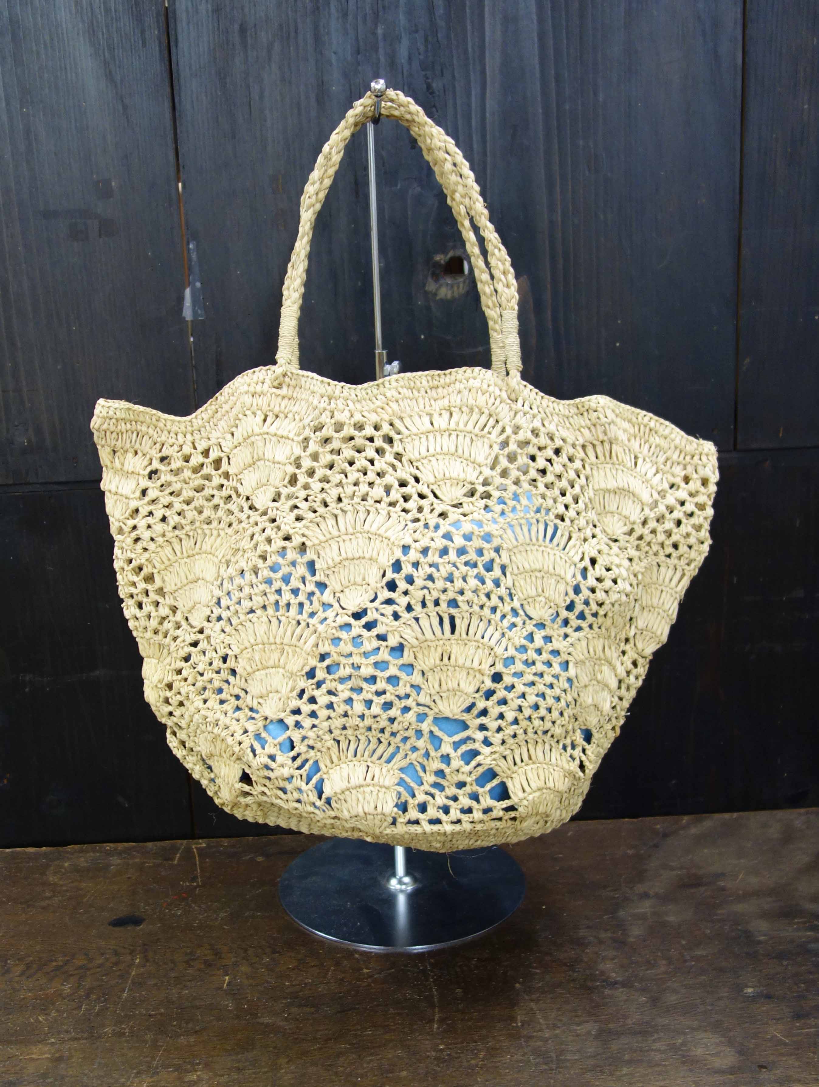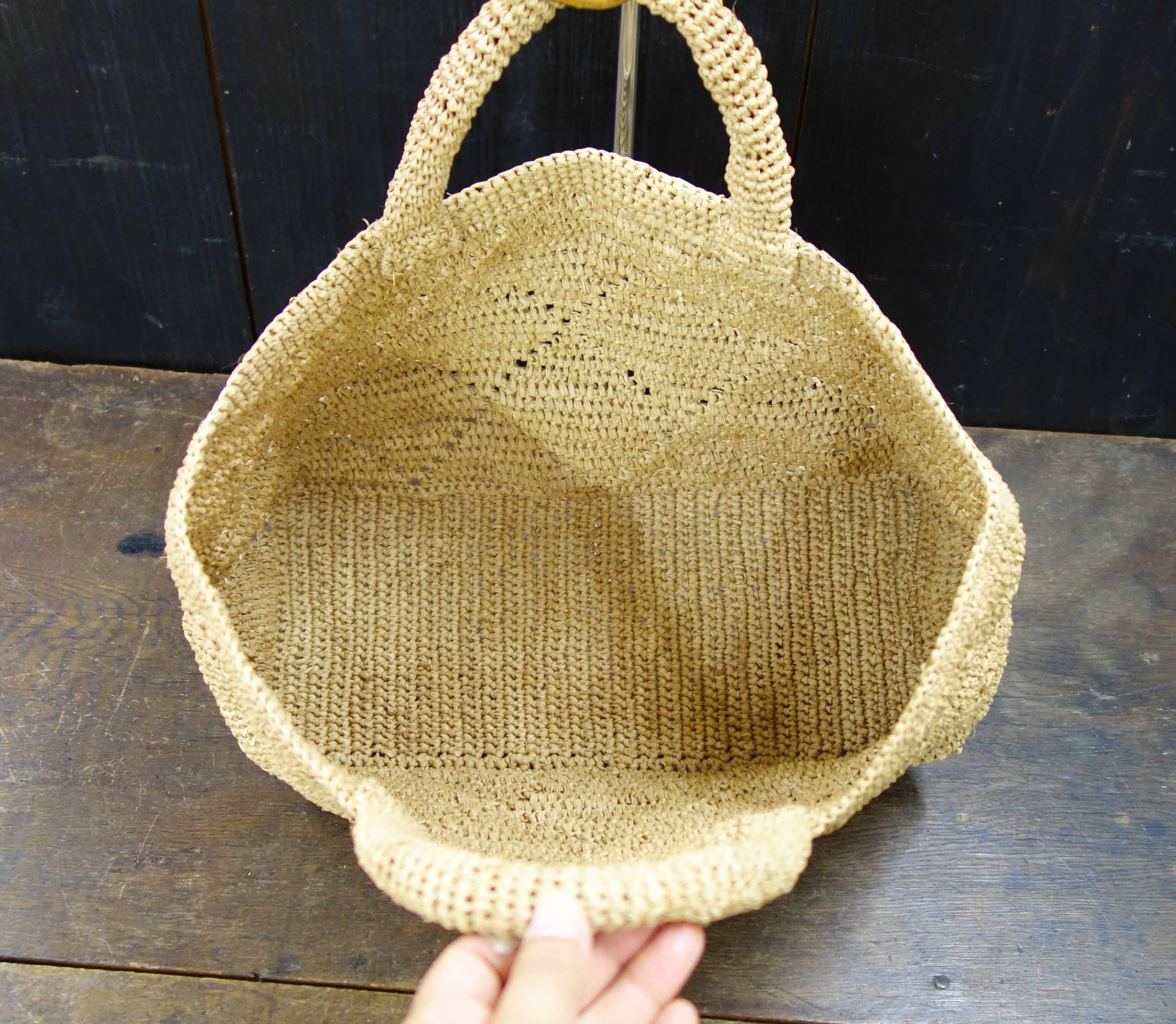 ラフィアかぎ編みバッグ 丸底 パイナップル柄 が入荷しました。