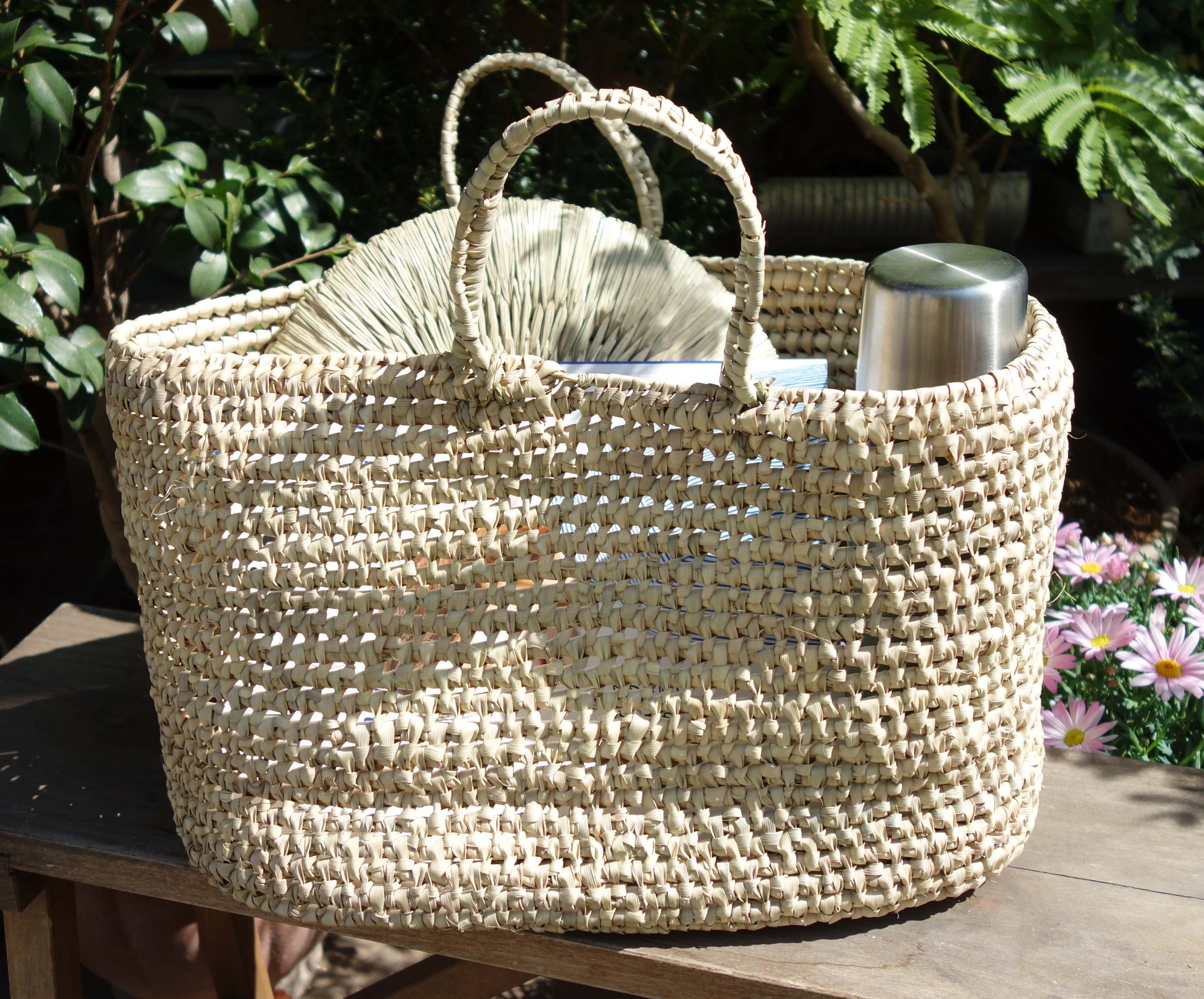 持ち手もカゴ本体と同じ椰子素材で出来ています。