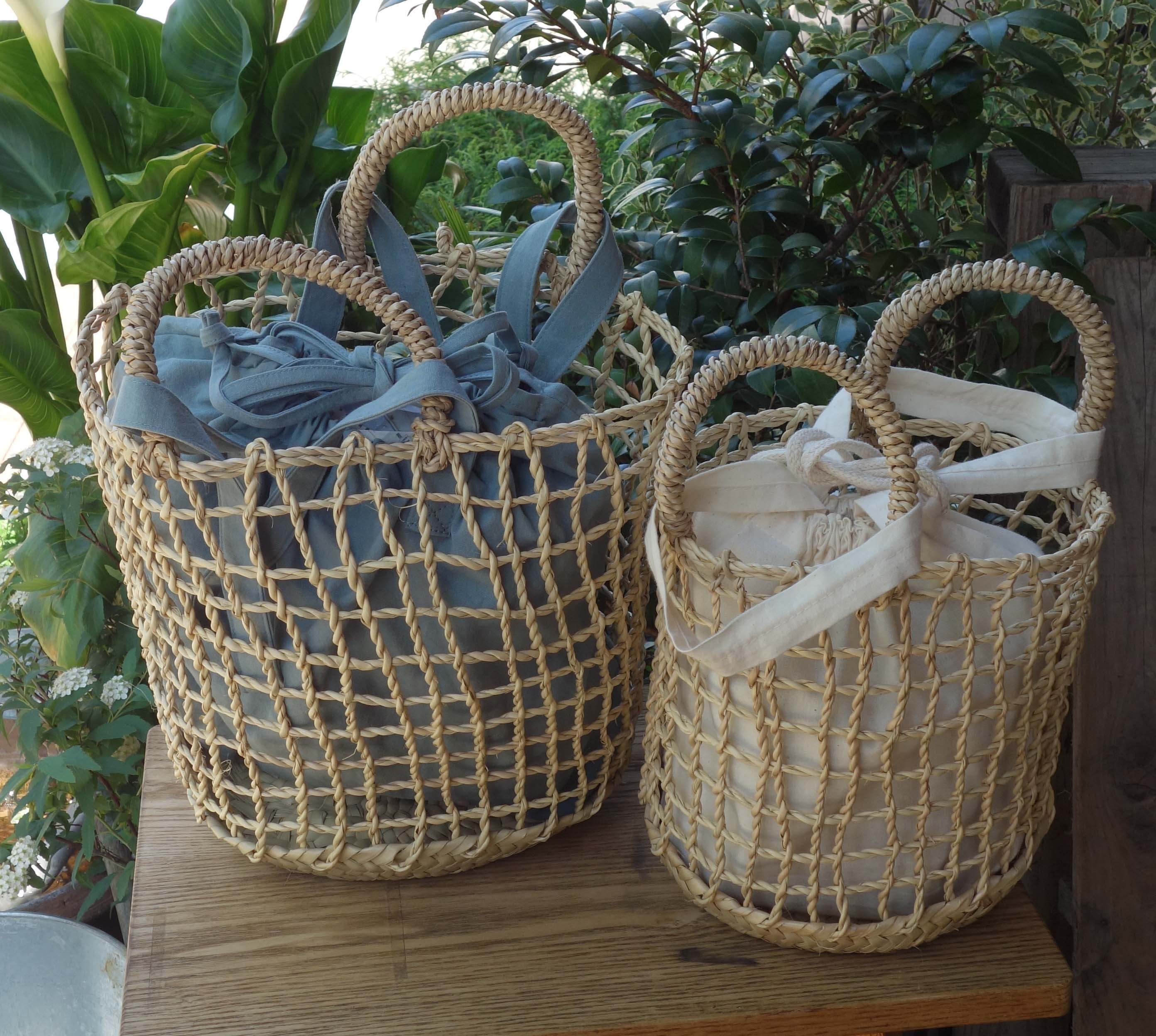 ロープを格子に編み上げたバッグです。MとSの2サイズございます。