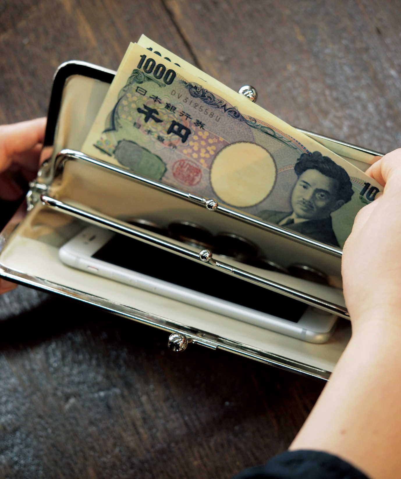 スマートフォンも収まる大きさなので、財布の役目とバッグの役目を一つにできます。