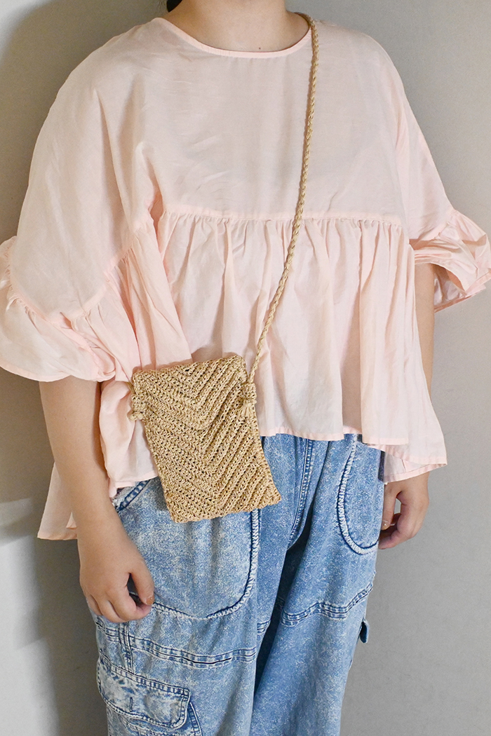 ラフィア素材で丁寧に編まれた斜めがけバッグ。
