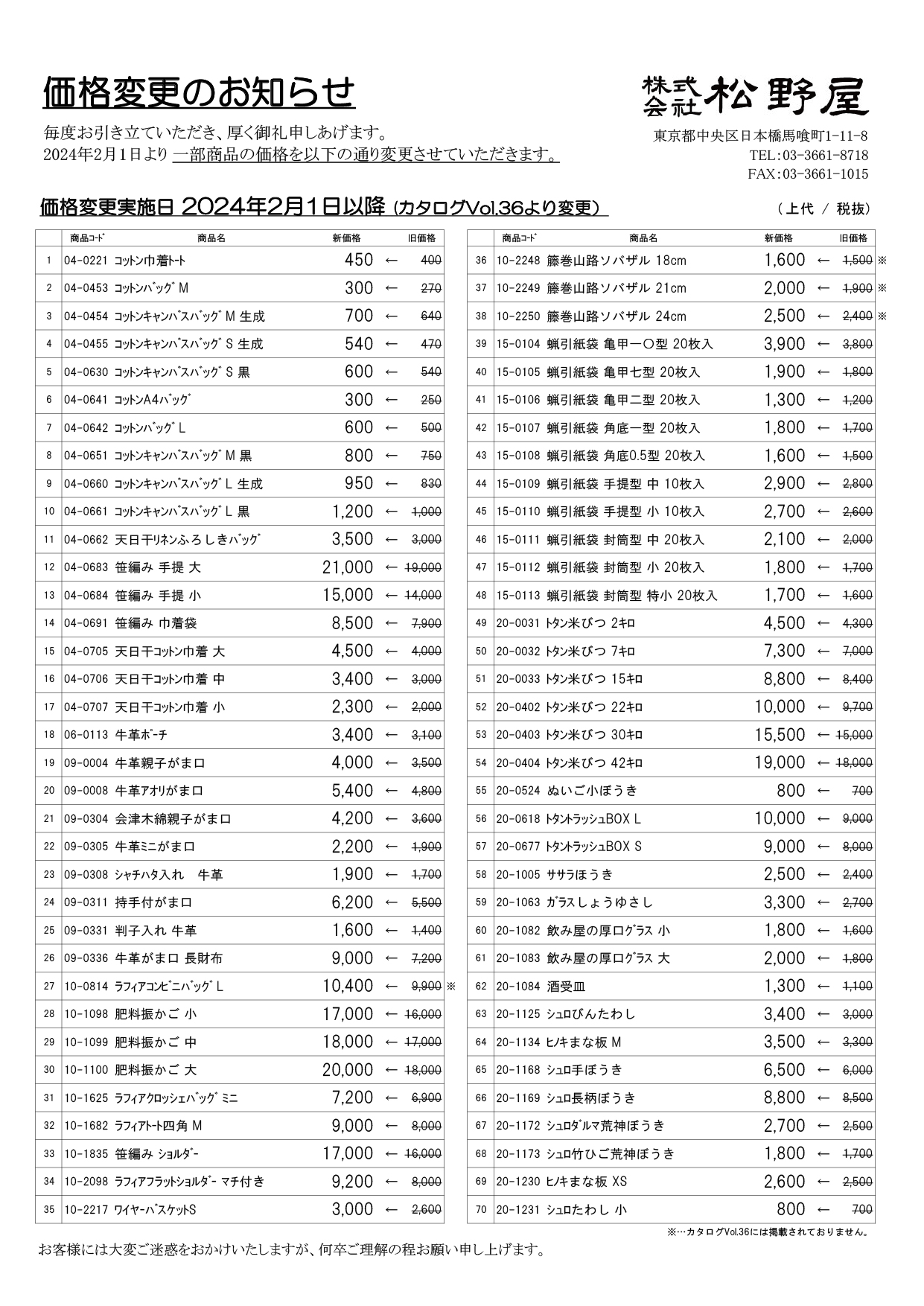馬喰町本社(卸売)・谷中松野屋(小売)は通常通り営業します。