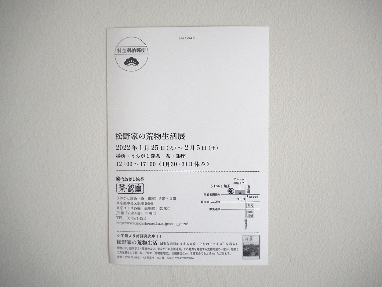 銀座のうおがし銘茶さんにて『松野家の荒物生活展』を開催いたします。
