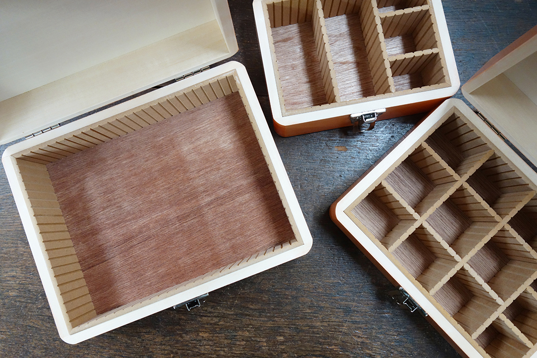Wooden stamp box can be a storage box as well with inside adjustable dividers.
