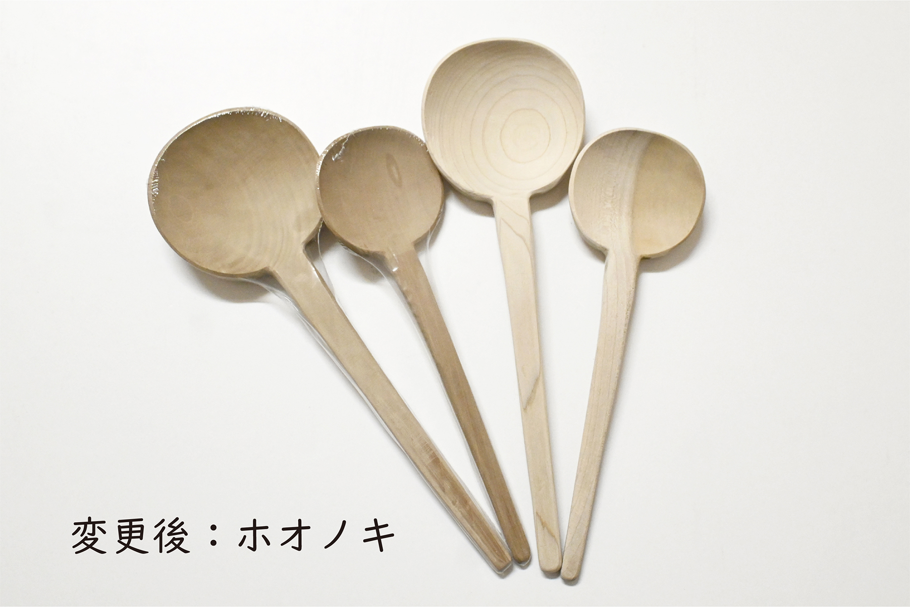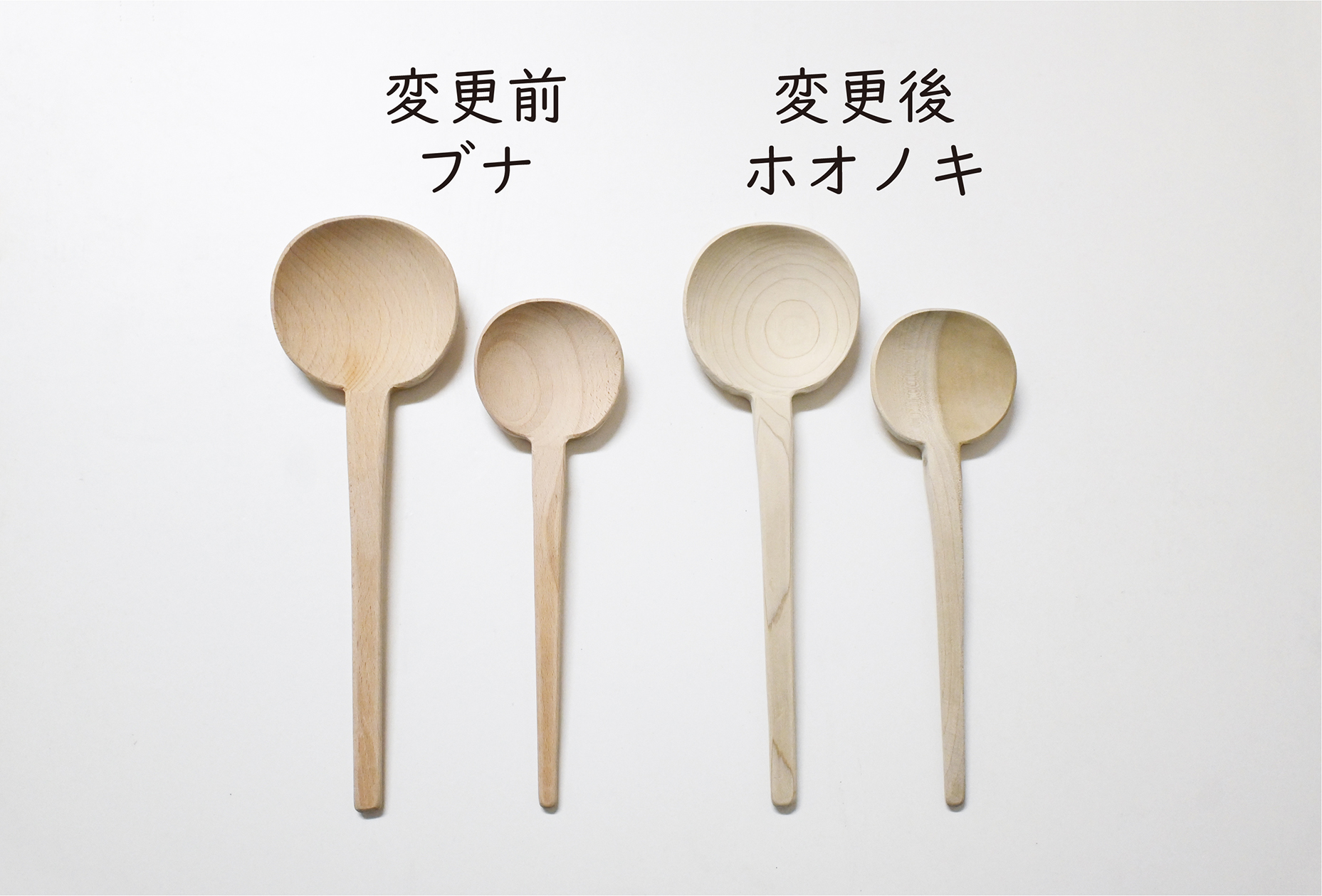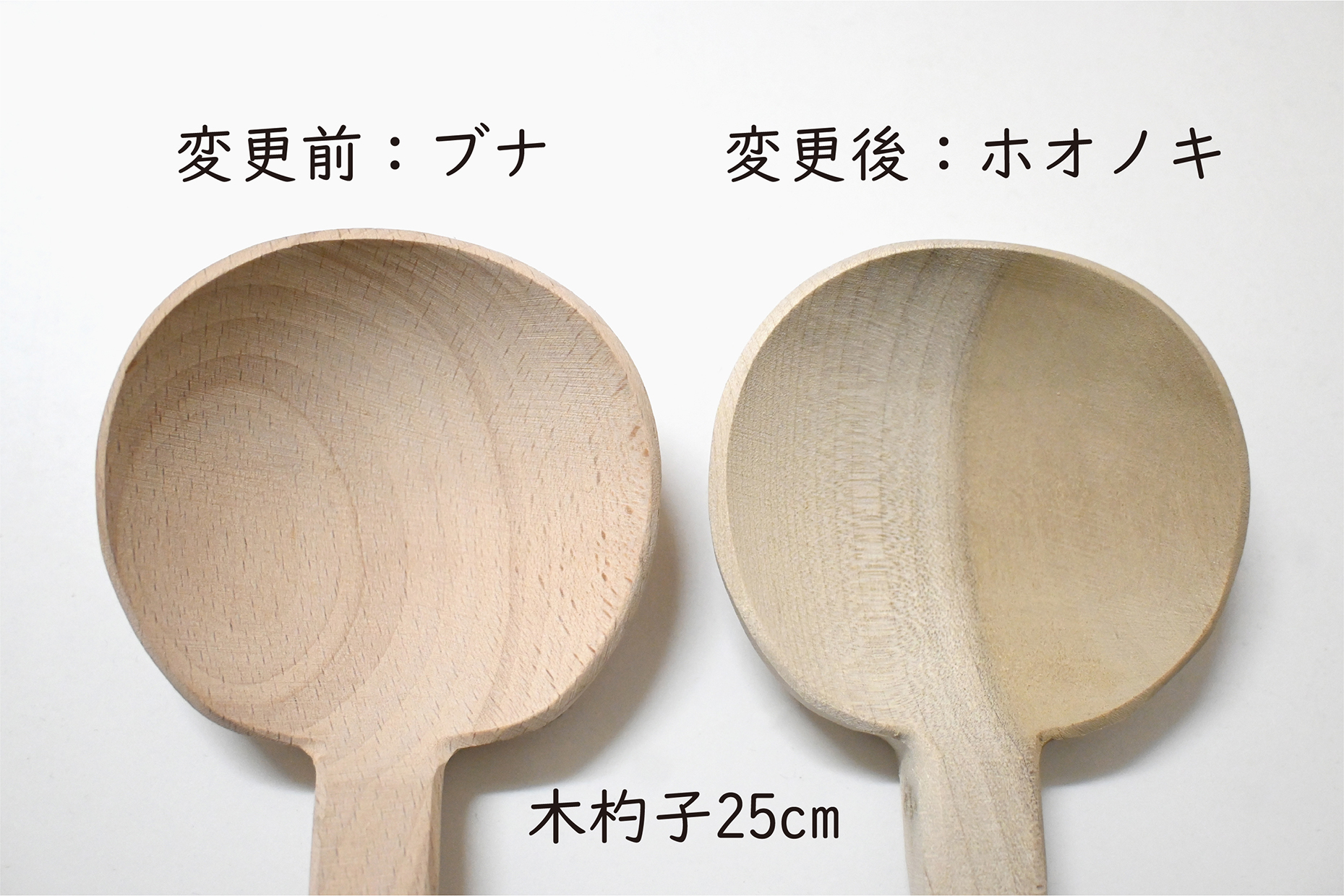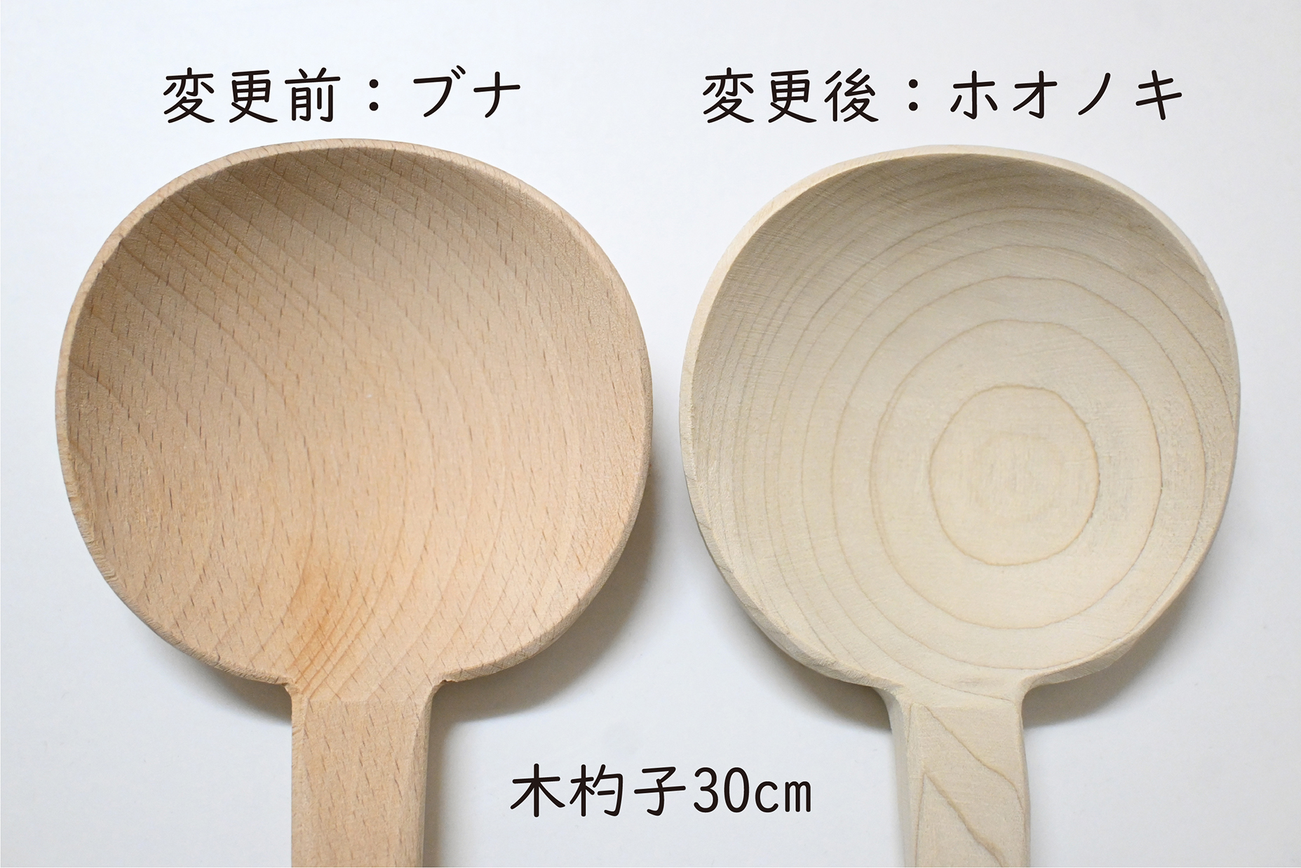 木杓子の素材が、ブナからホオノキに変更になりました。