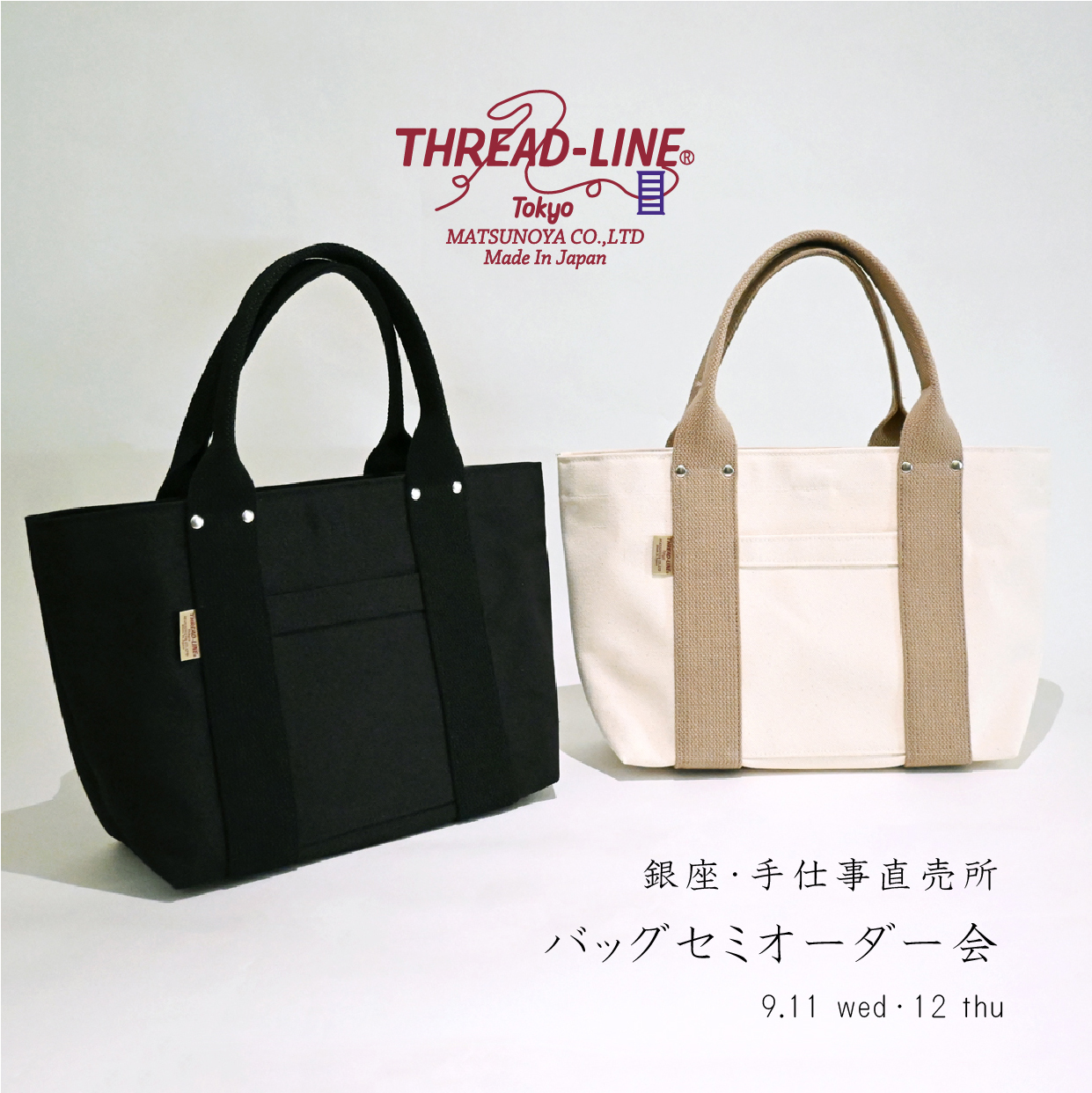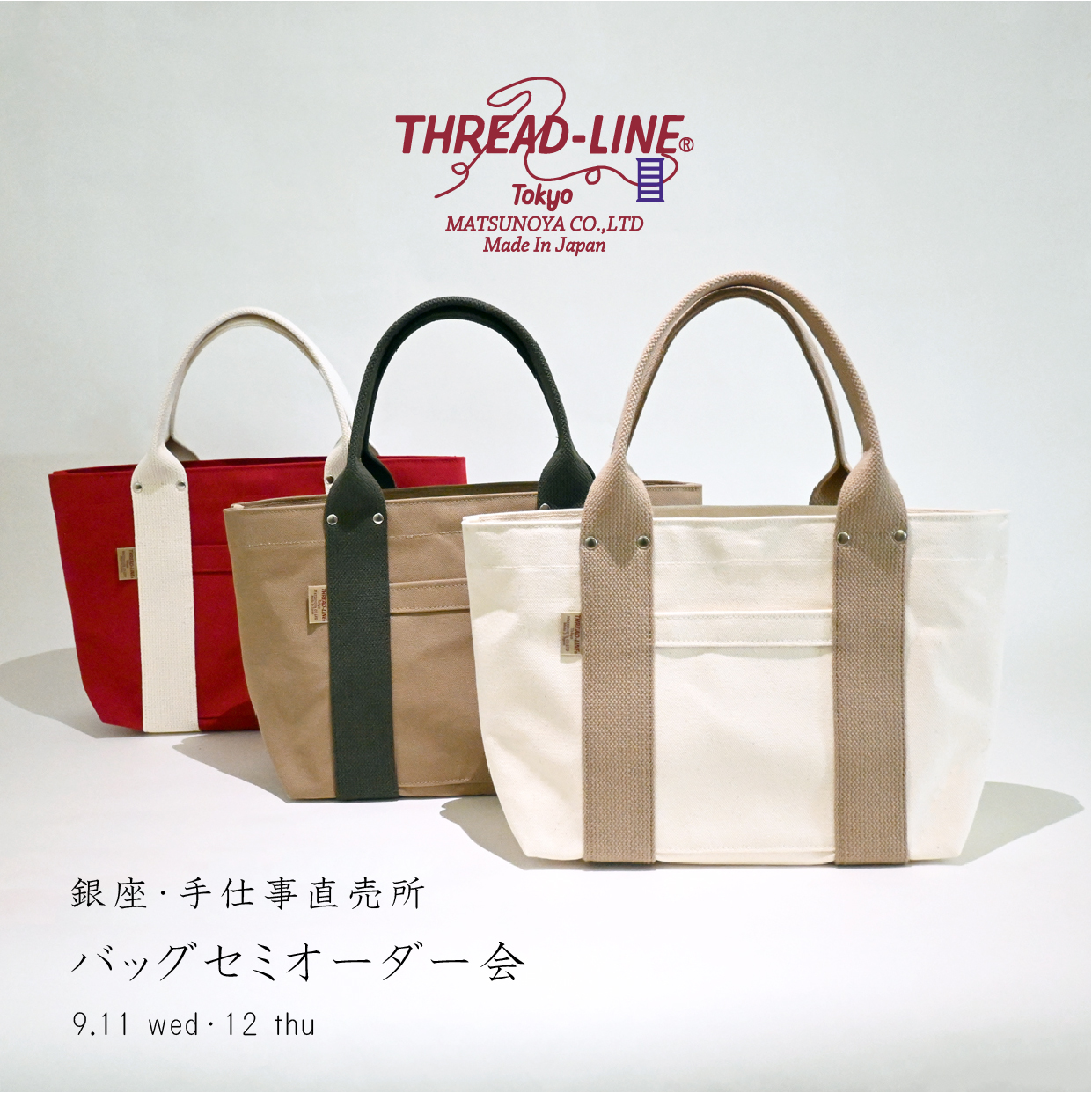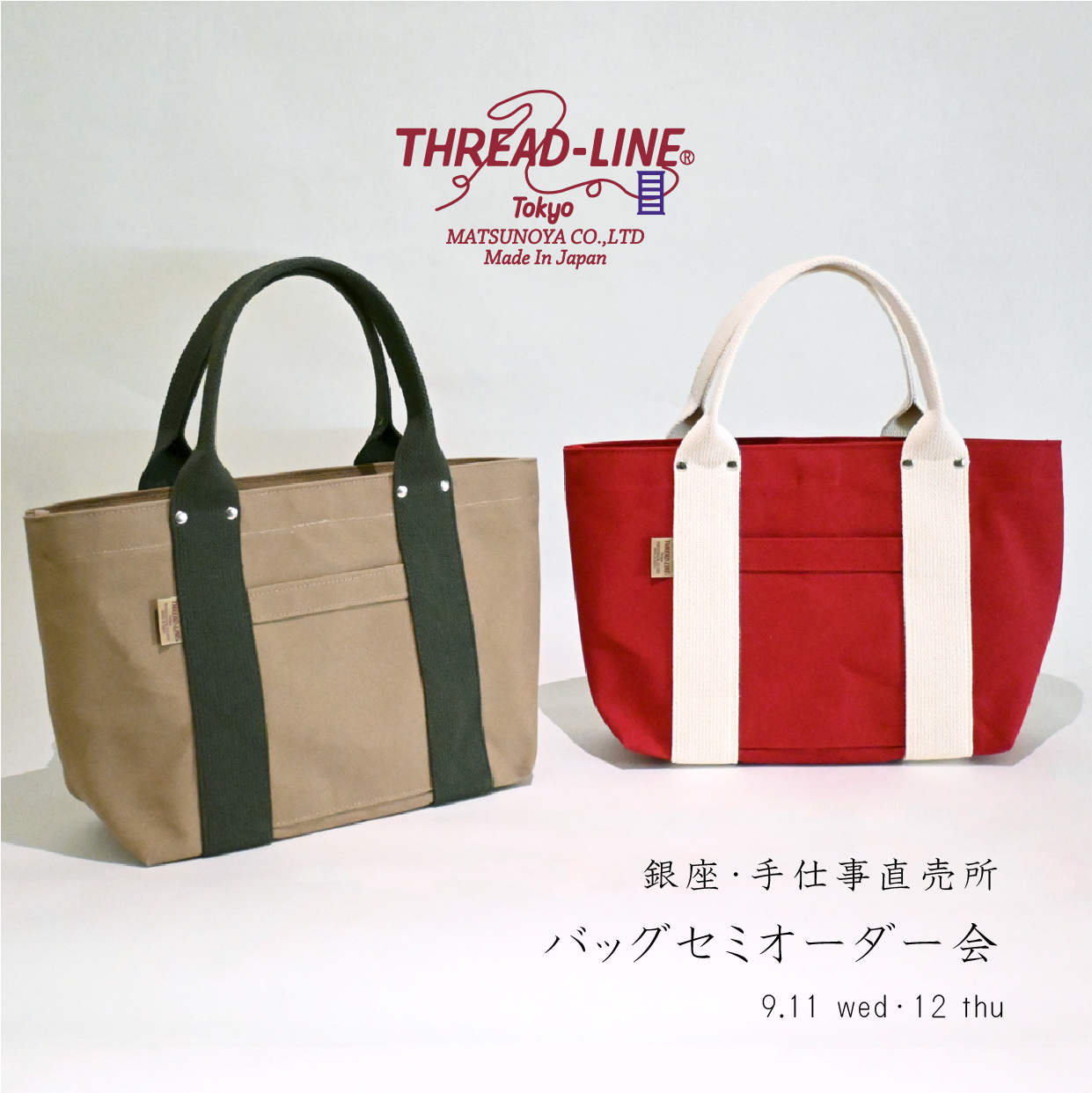 <松野屋>のオリジナル鞄ブランド<THREAD-LINE>の人気商品「ヘビーキャンバストートS」のオーダー会を、銀座・手仕事直売所で初めて開催いたします。