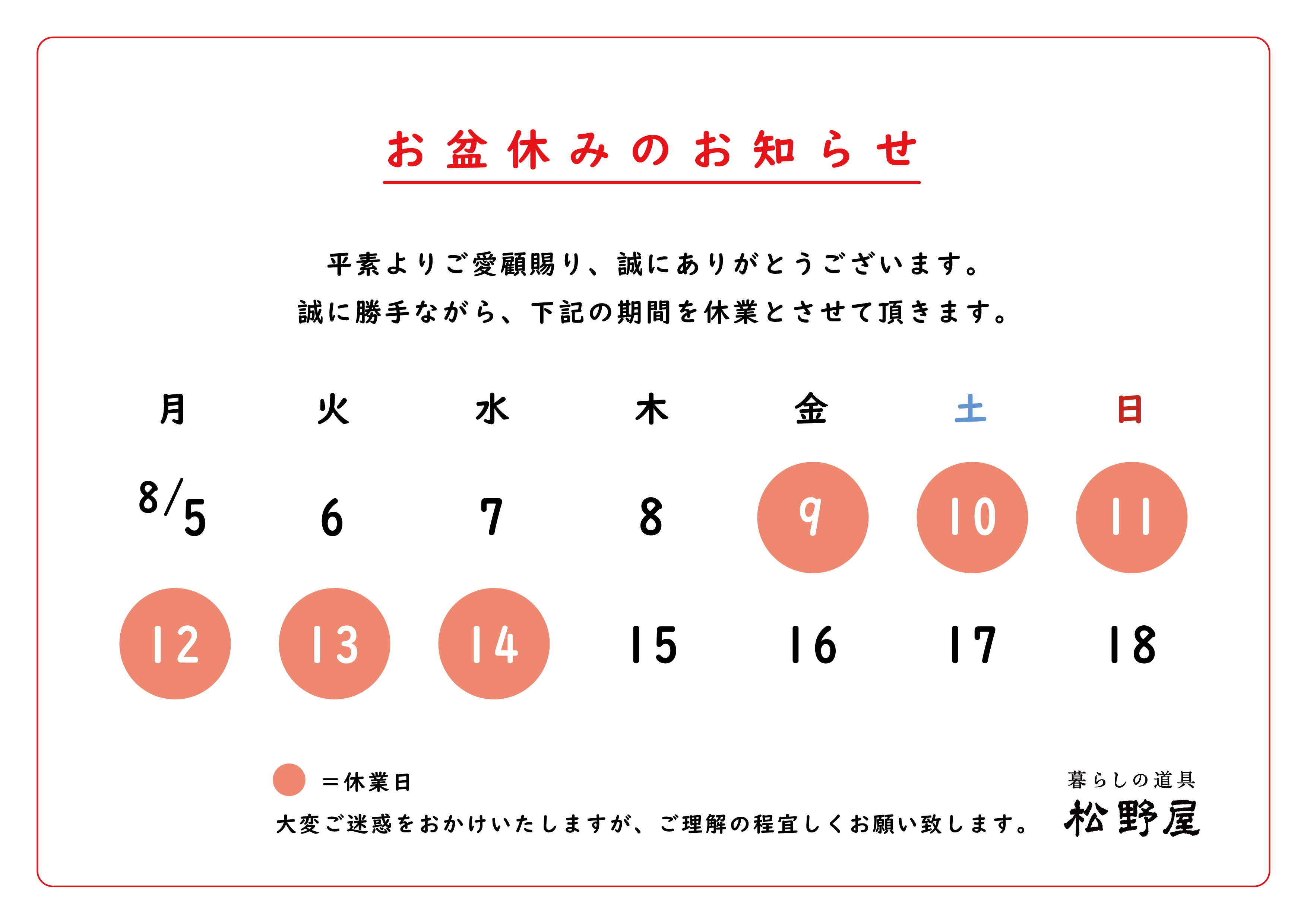馬喰町本社(卸売)・谷中松野屋(小売)は通常通り営業します。