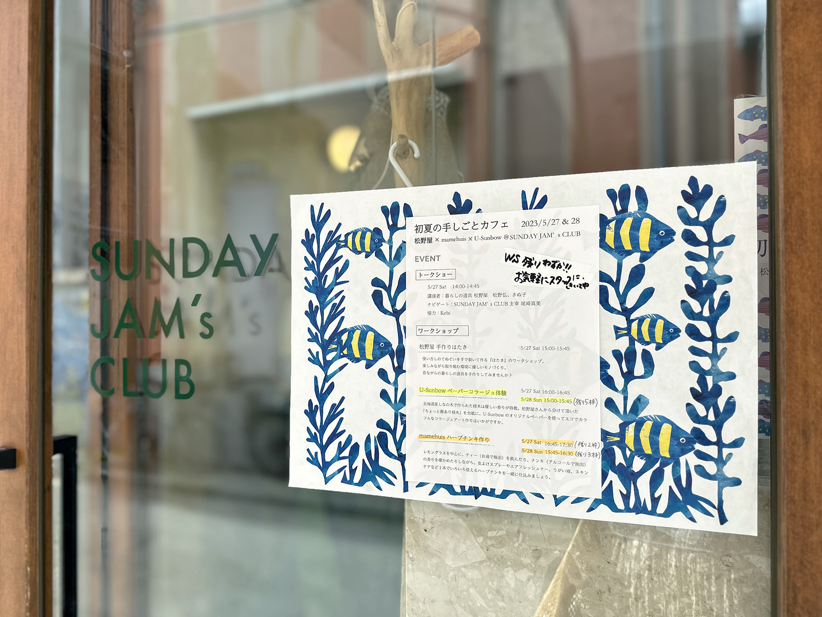 また27日(土)には、社長夫妻と、SUNDAY JAMs CLUBの尾崎さまのトークショーと、