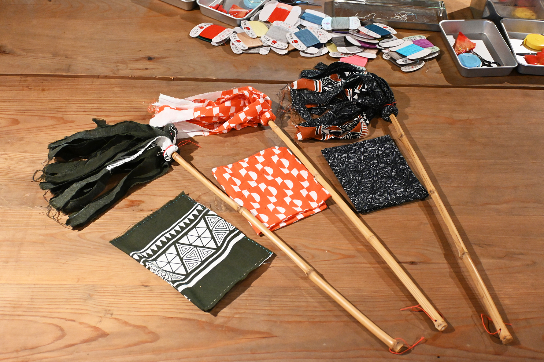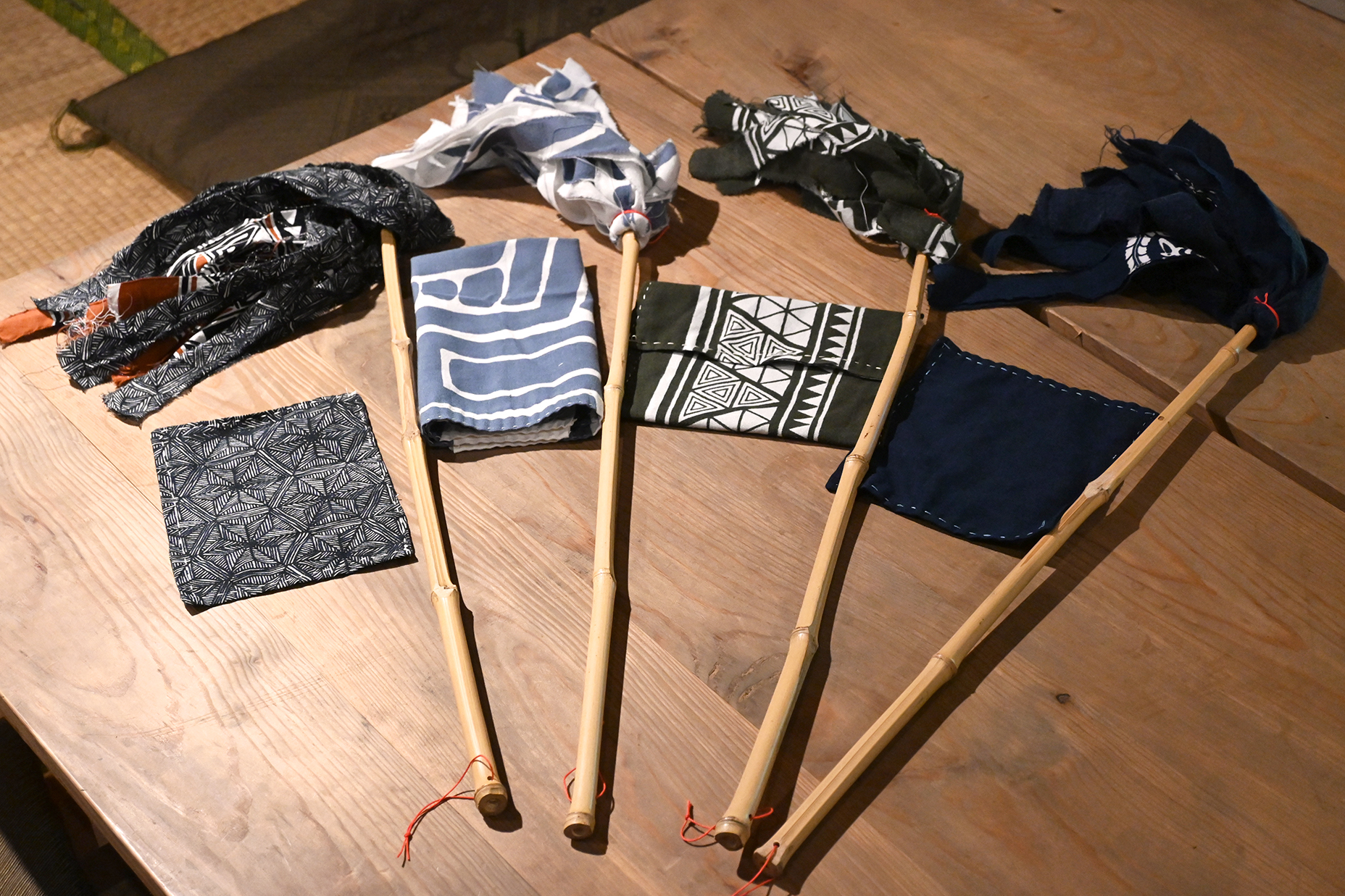 デザインがかっこいい手ぬぐいたちなので、はたきになってもかっこいい!