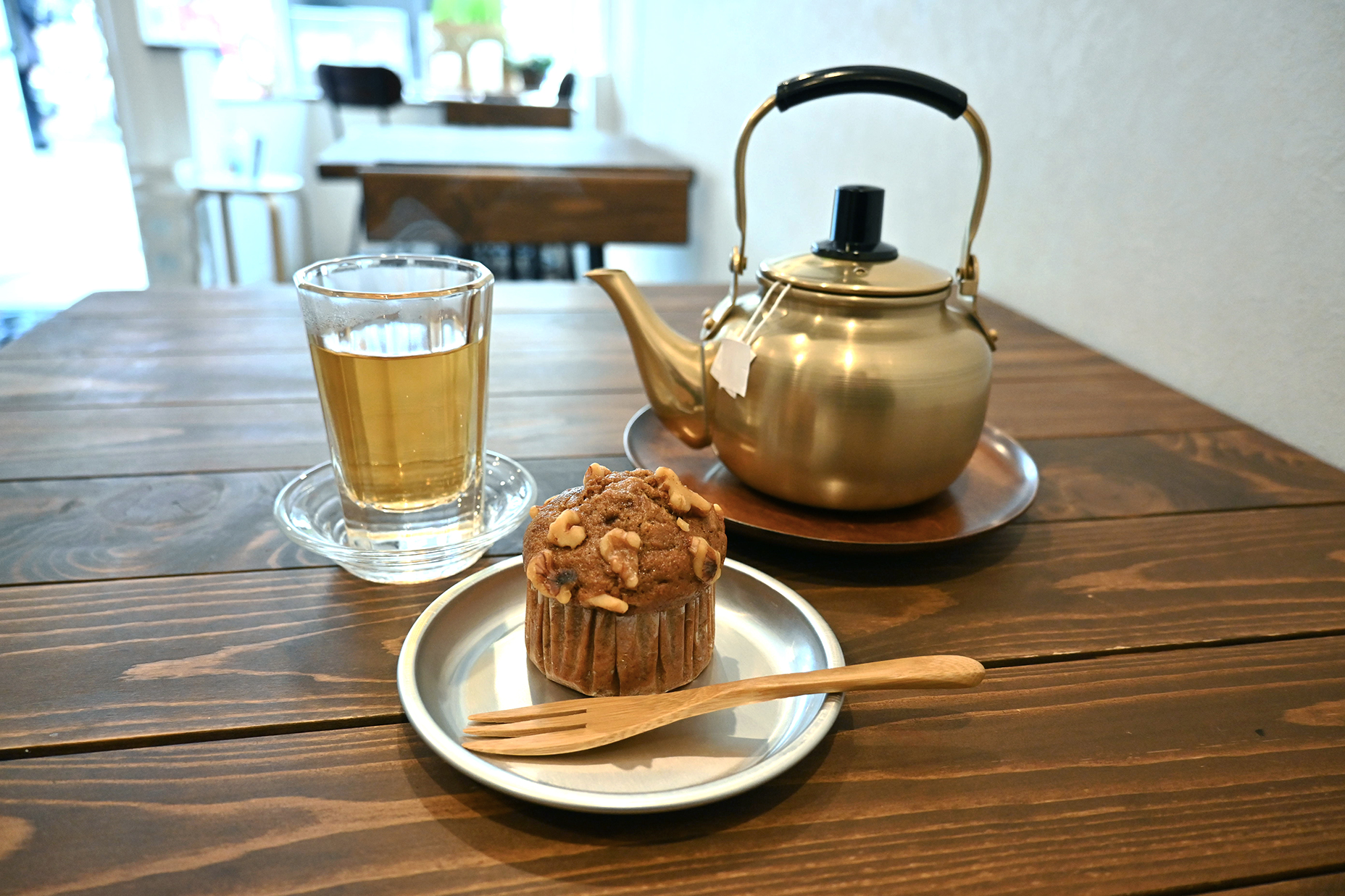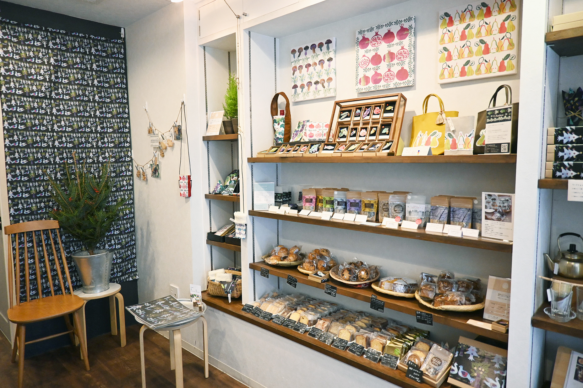 ふくふく焼菓子店さんの焼き菓子と、U-Sunbowさんとコラボした雑貨、mamehuisさんのお茶たち。