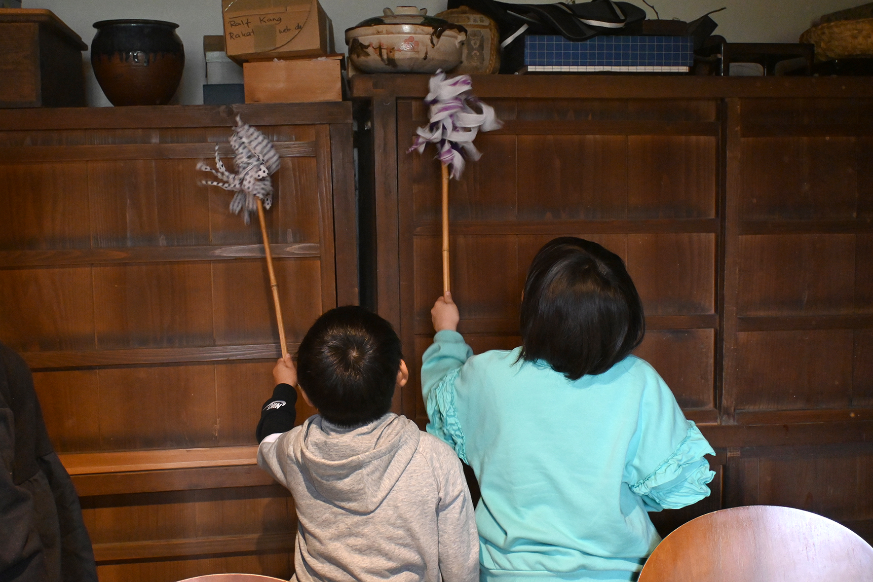 できあがったはたきで、はたきの練習をする姿もありました◎