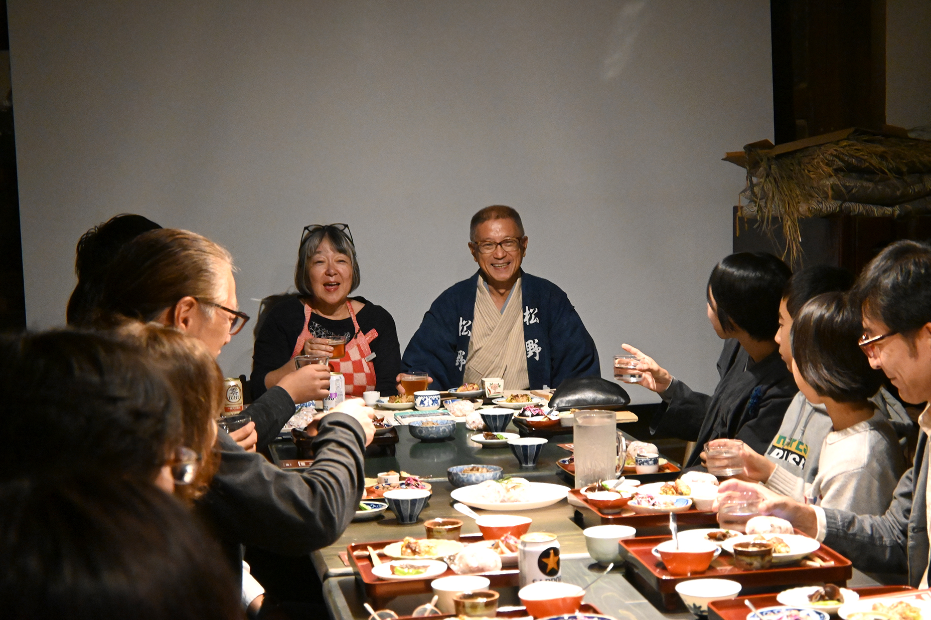 地元のお野菜や調味料、地酒を振舞っていただき、