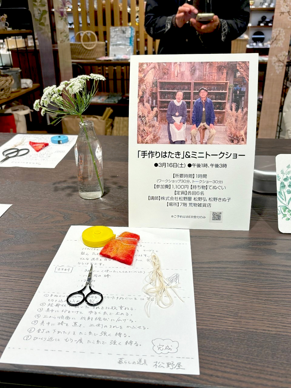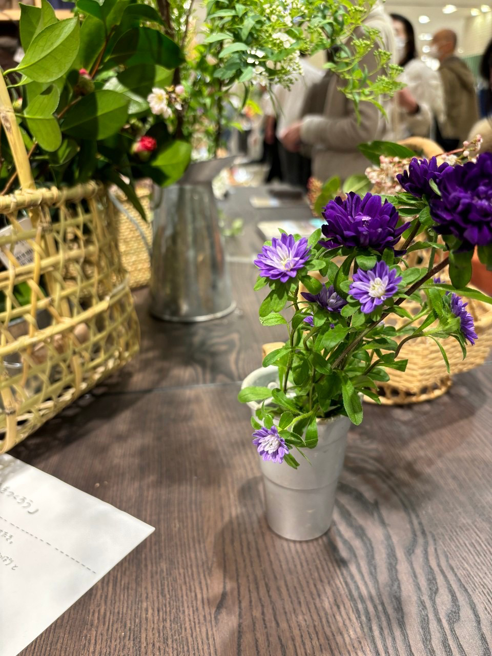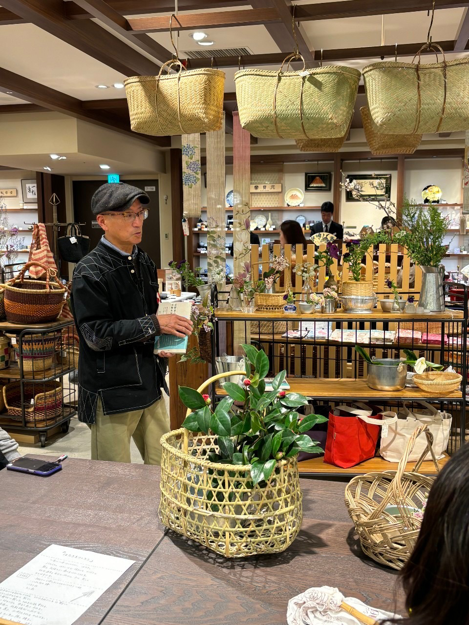 社長によるミニトークショーは、「荒物に花を活ける」をテーマに、
