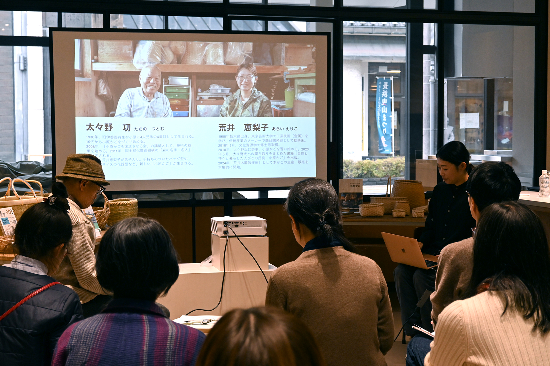 松野屋の代表・松野弘と、小原かごの荒井恵梨子さんのお話会を開催。