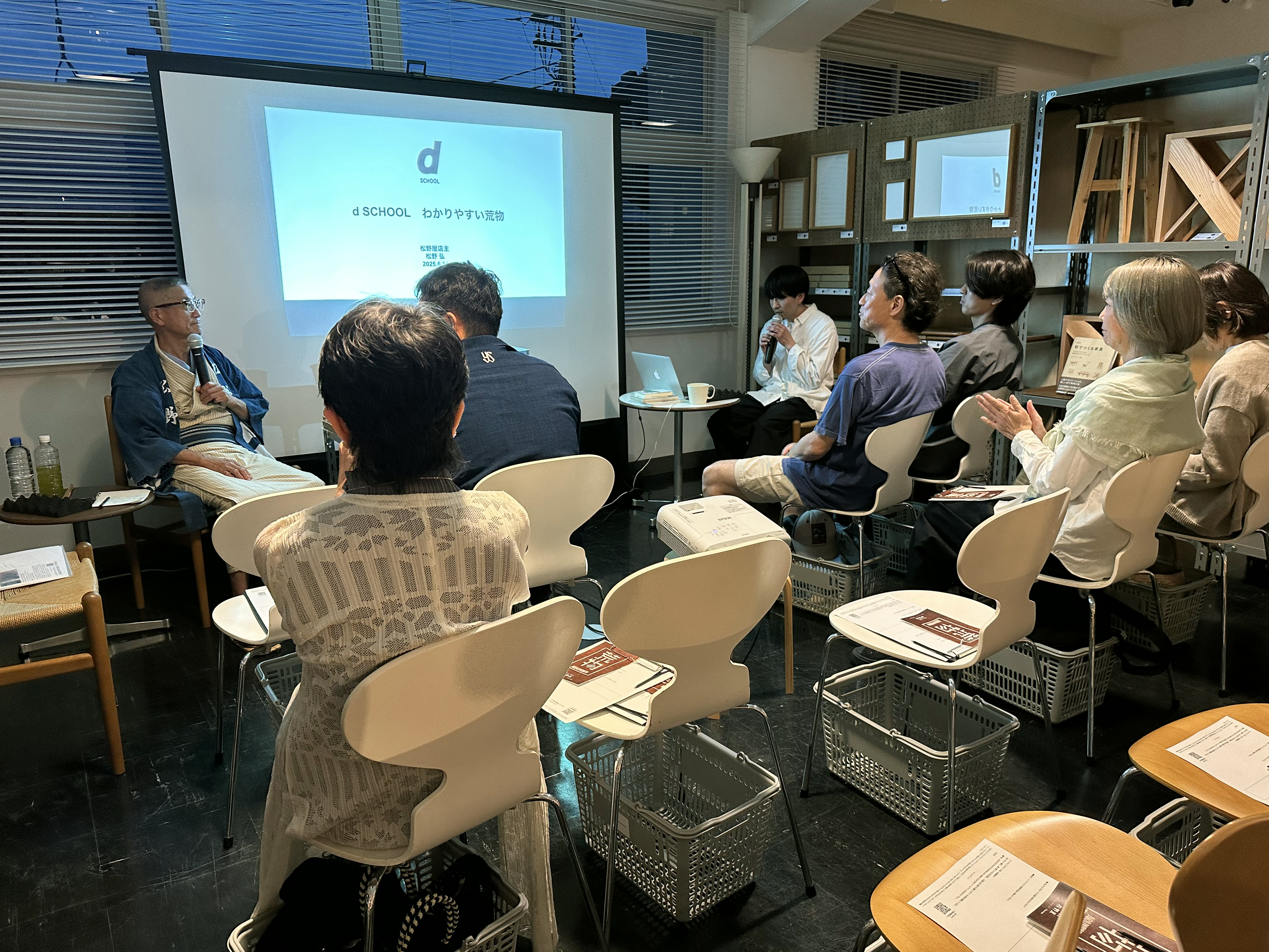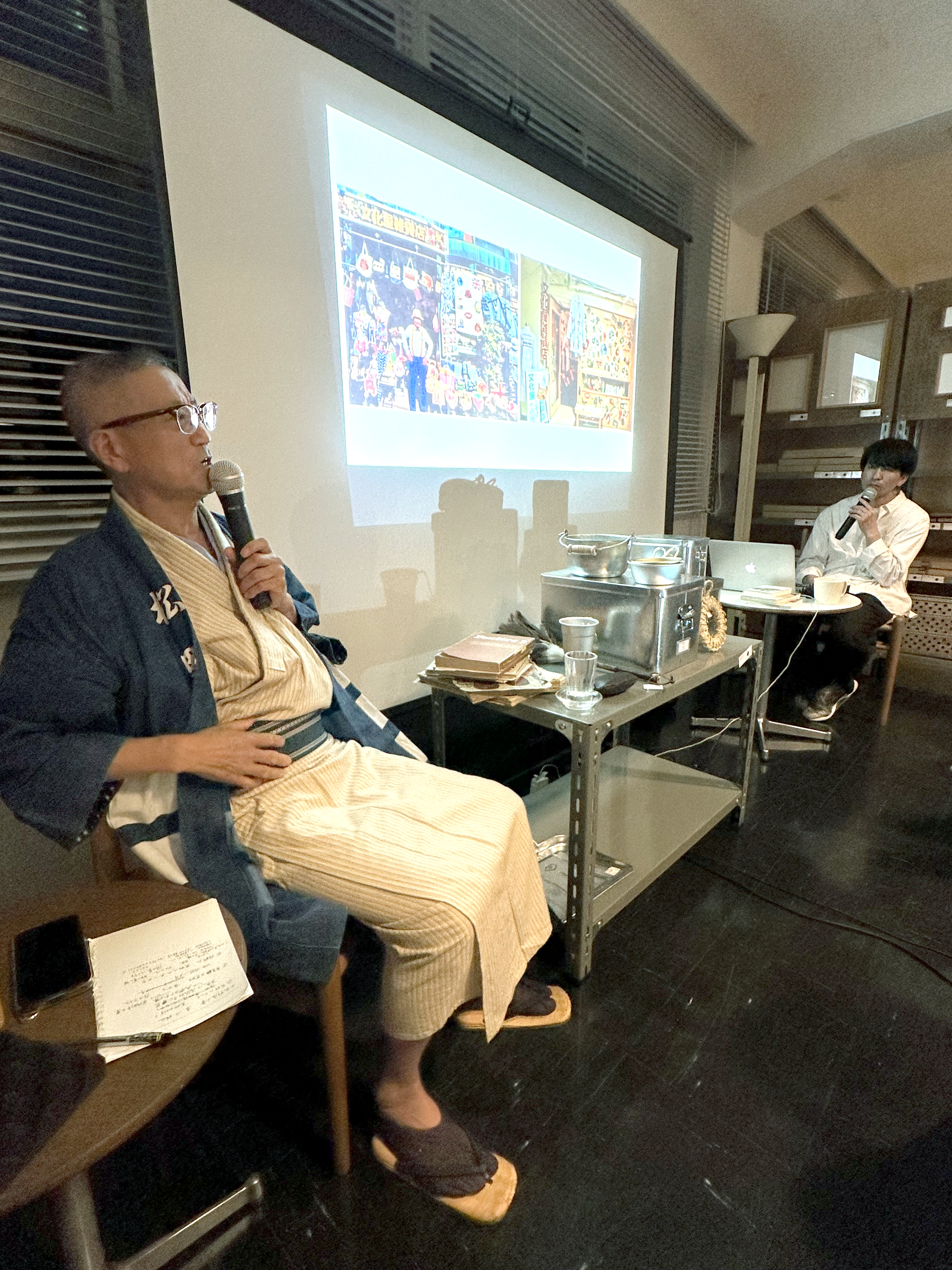 荒物とはから始まり、荒物屋になった経緯や、どのように商品と出会ったかなど、笑いも交えてのトークイベントとなりました。