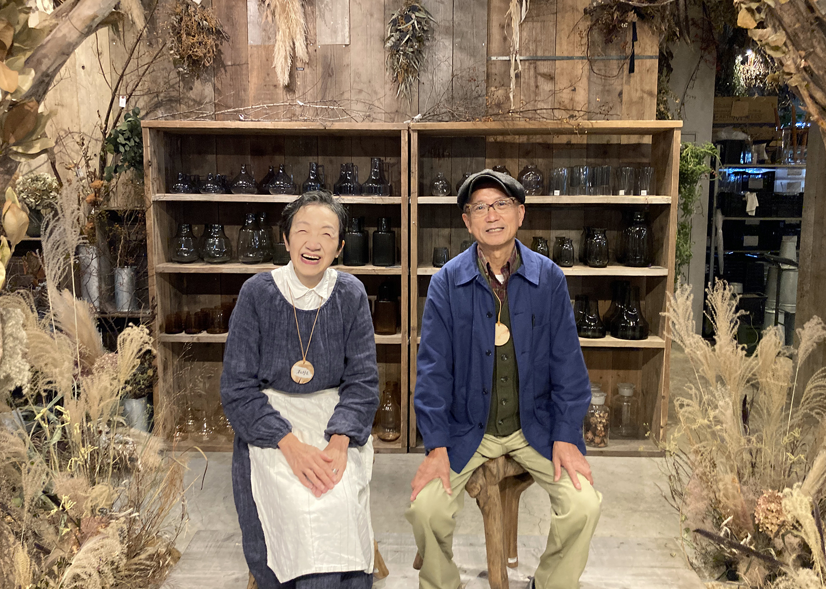 たくさんの生き生きとした植物や雰囲気のあるドライフラワーに囲まれ、
