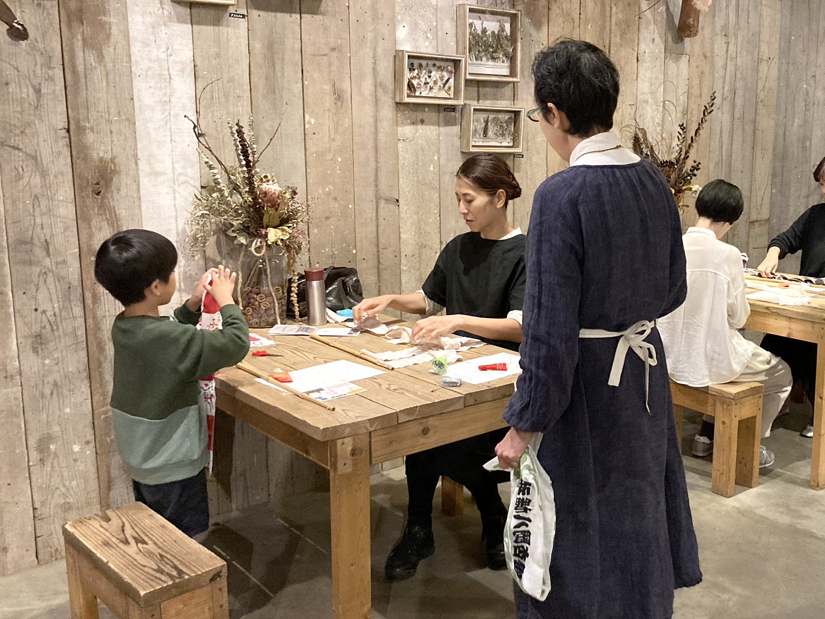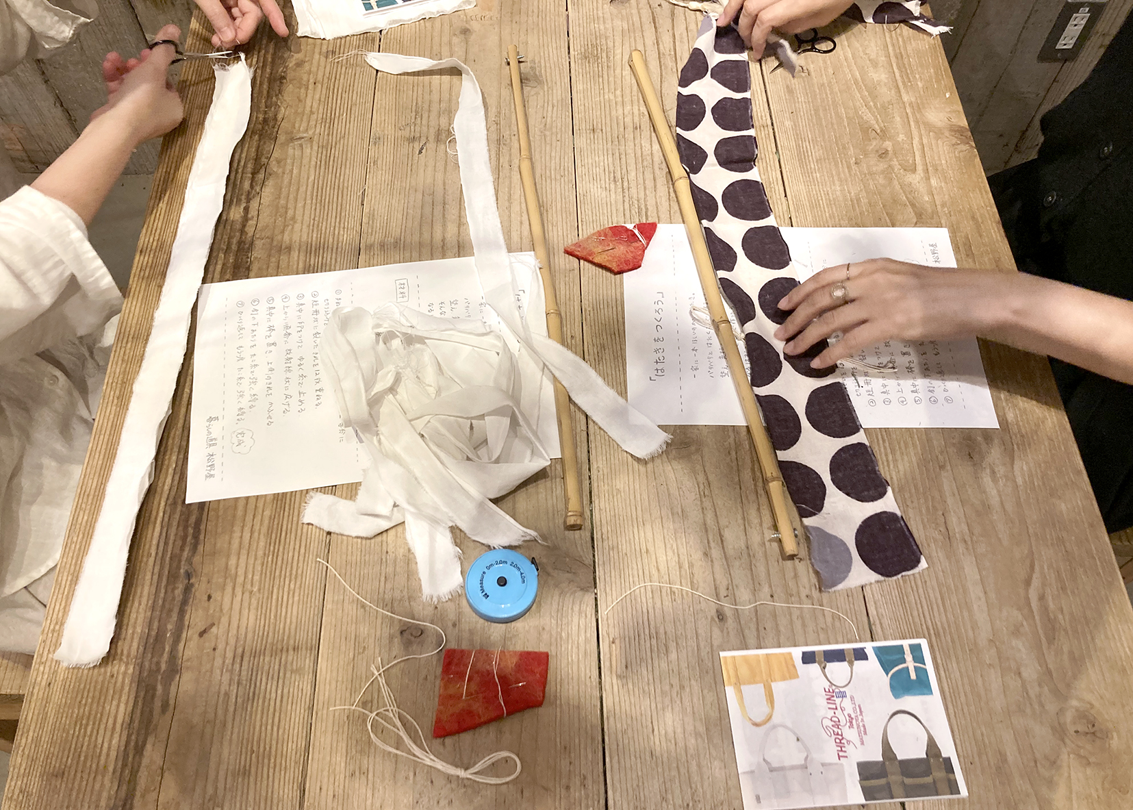 ワークショップは皆さんにお気に入りの手ぬぐいをお持ちいただき、