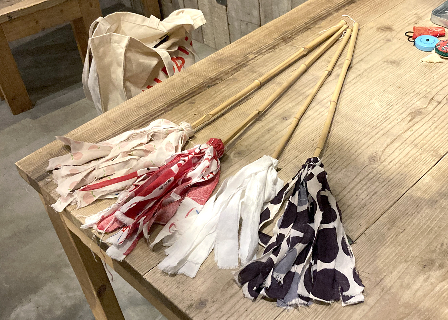 きぬ子さん指導のもと素敵なはたきが出来上がりました。