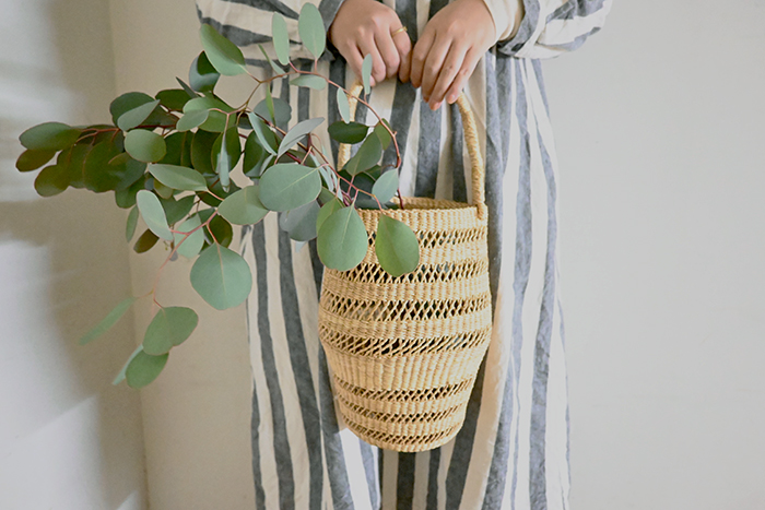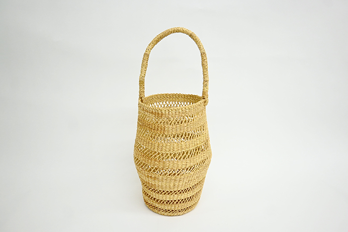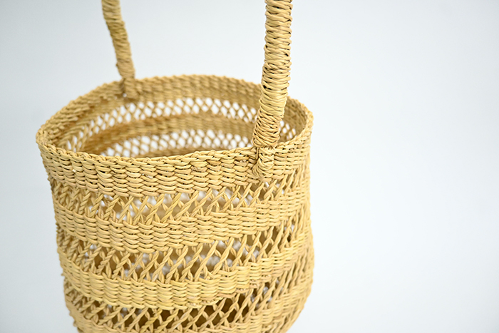 ボルガ丸底透かしカゴ ぷっくり縦長ワンハンドル