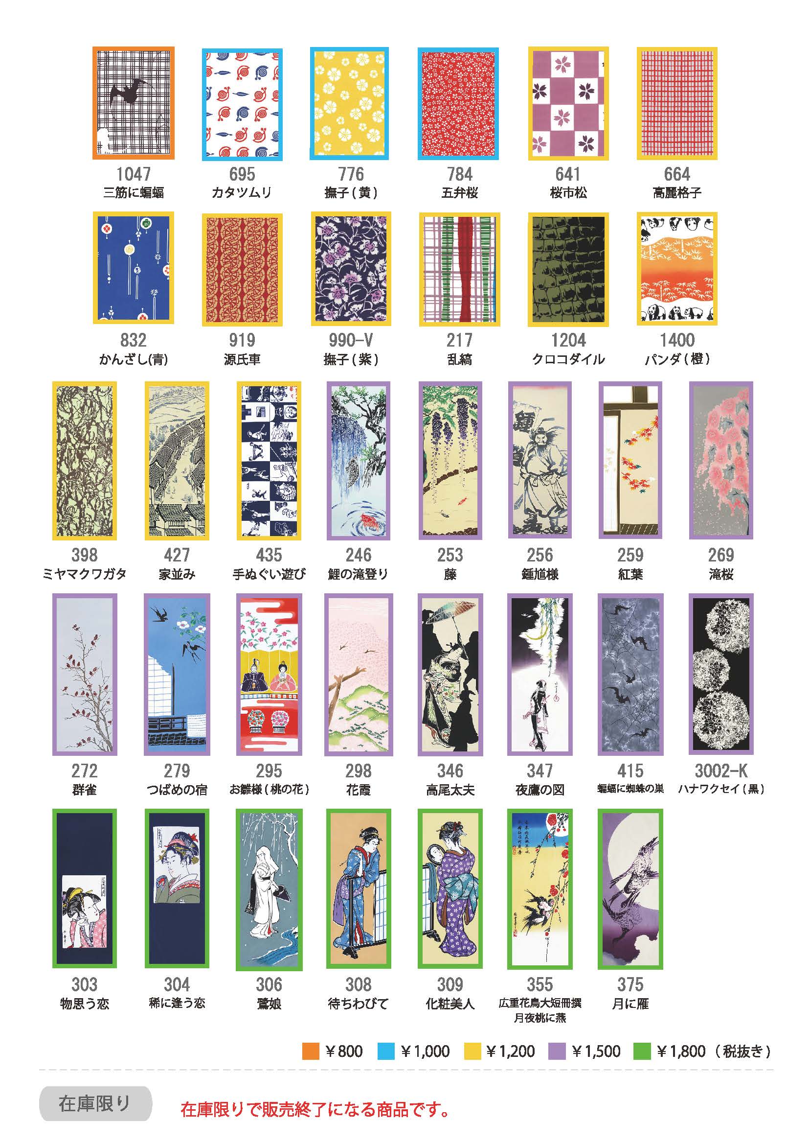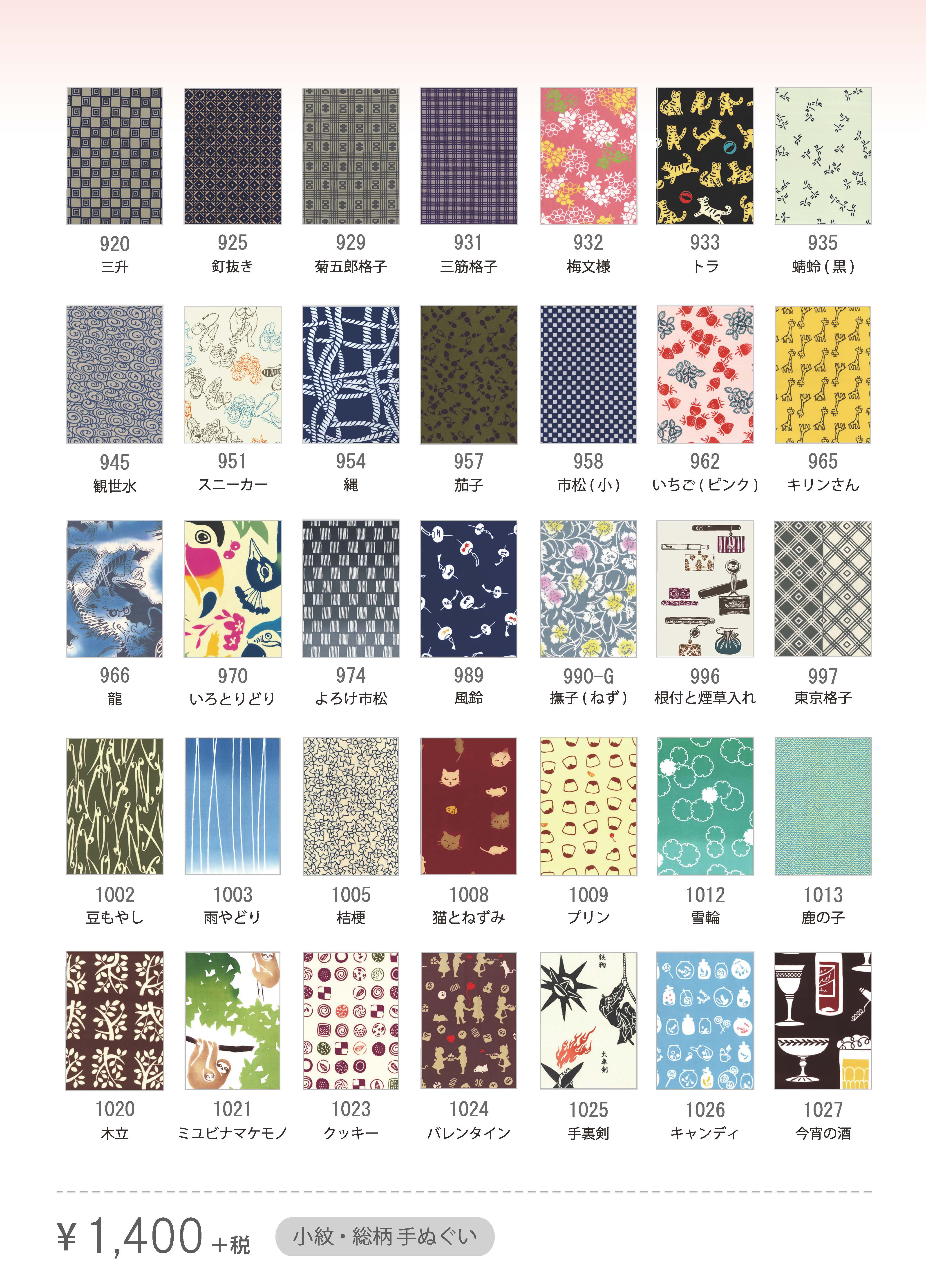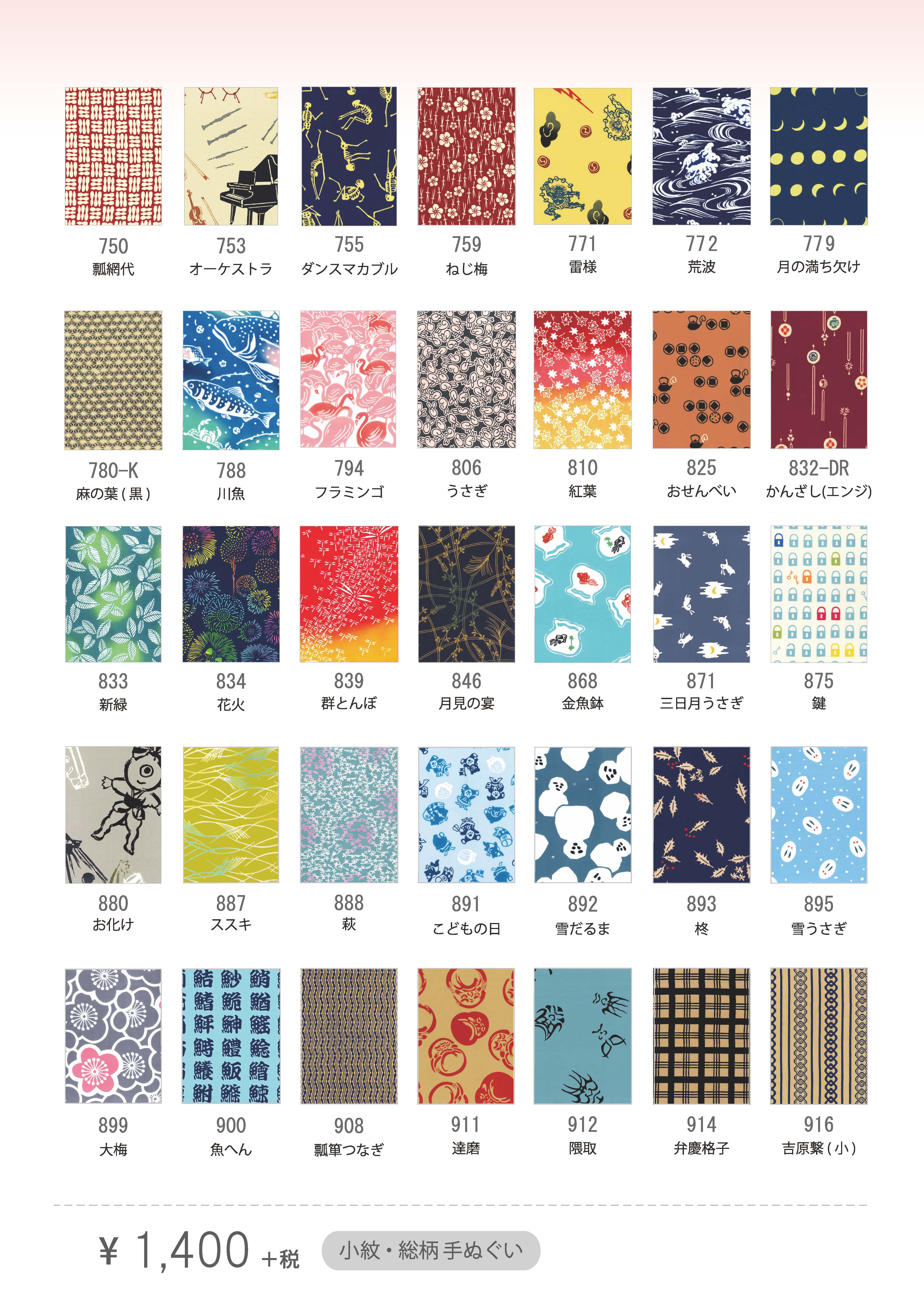 新価格の手ぬぐいカタログページを掲載いたしますので、