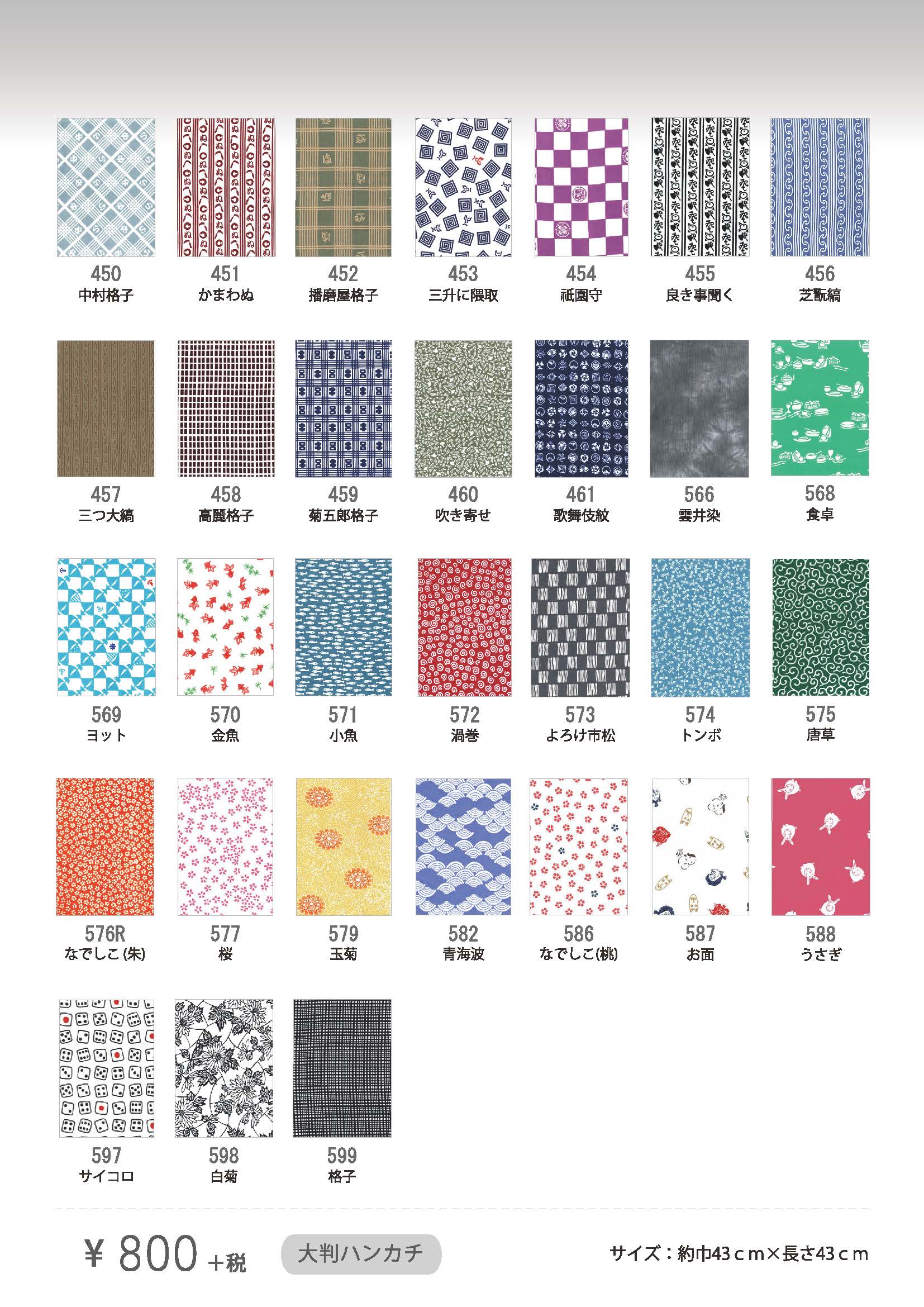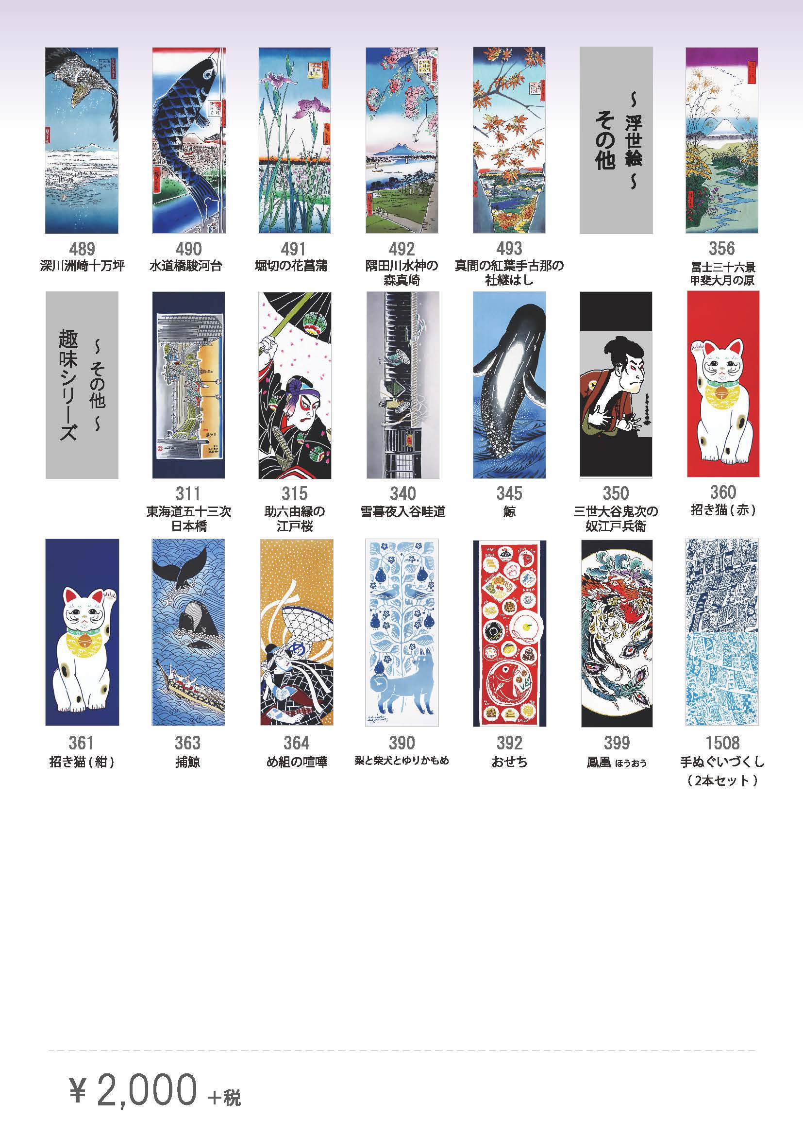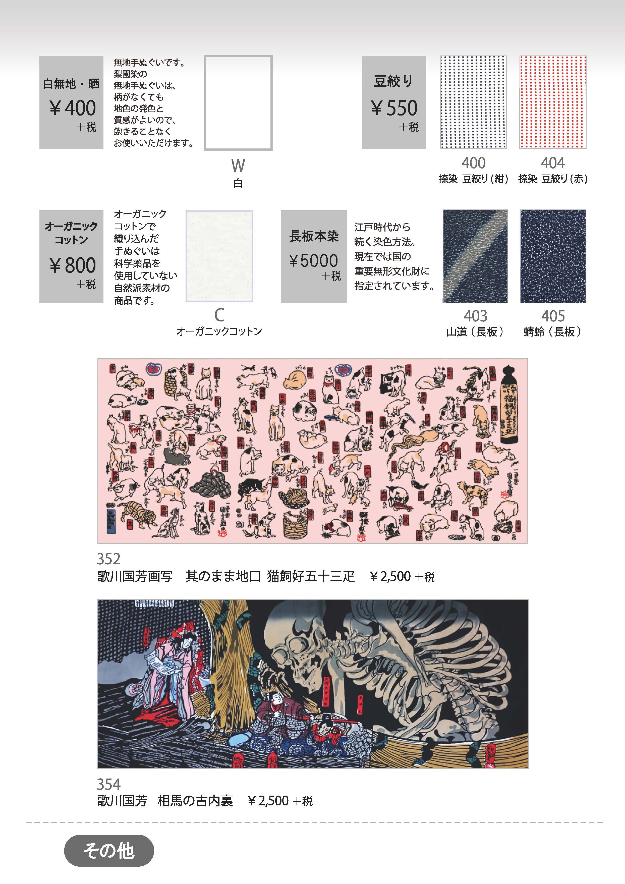 新価格の手ぬぐいカタログページを掲載いたしますので、